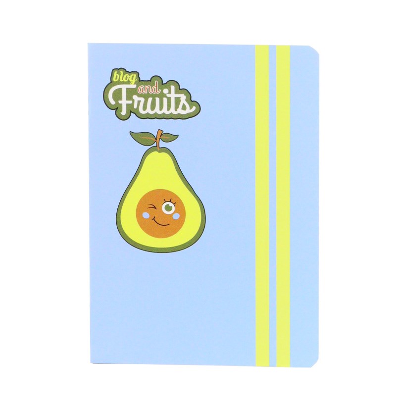 Bilježnica mekih korica veselog dizajna voća s lakiranim detaljima, klamano, 48 listova kvalitetnog 90 gr. papira. 2 motiva sortirano.