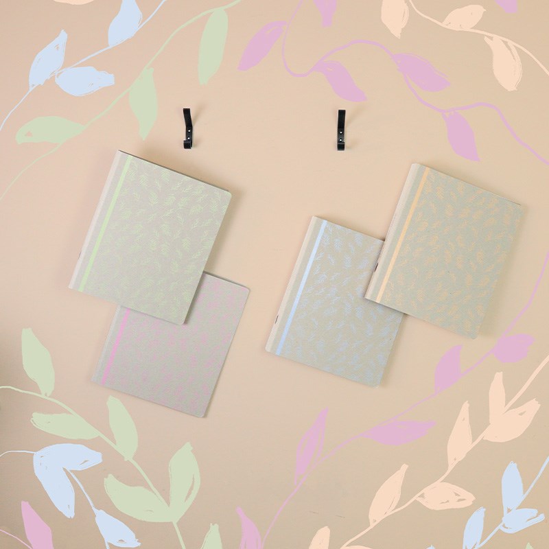 Bilježnica mekih korica od recikliranog kartona, klamano, 48 listova kvalitetnog 90 gr. papira. 4 motiva sortirano.