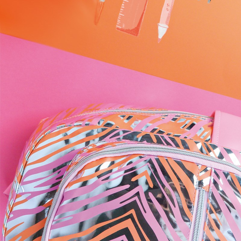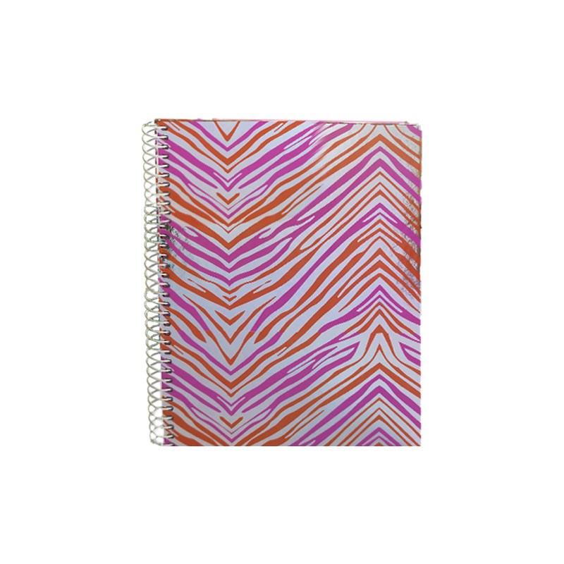 Bilježnica tvrdih korica, spiralni uvez, 80 listova kvalitetnog 90 gr. papira s mikroperforacijom i rupama za odlaganje. Metalizirani zebrasti uzorak.