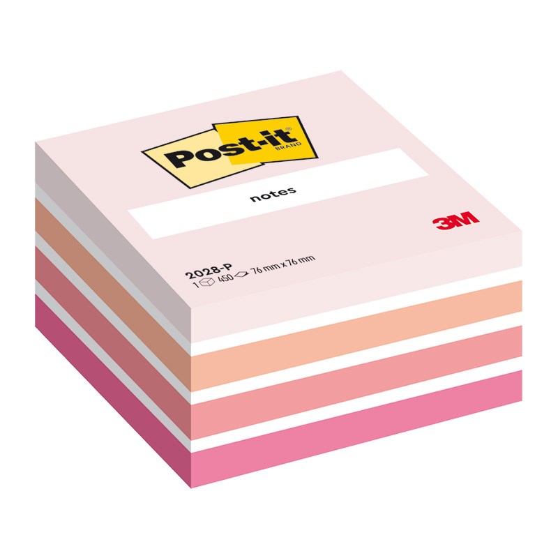 Blok samoljepiva kocka 76x76 mm za poruke u pastelnim pink bojama.