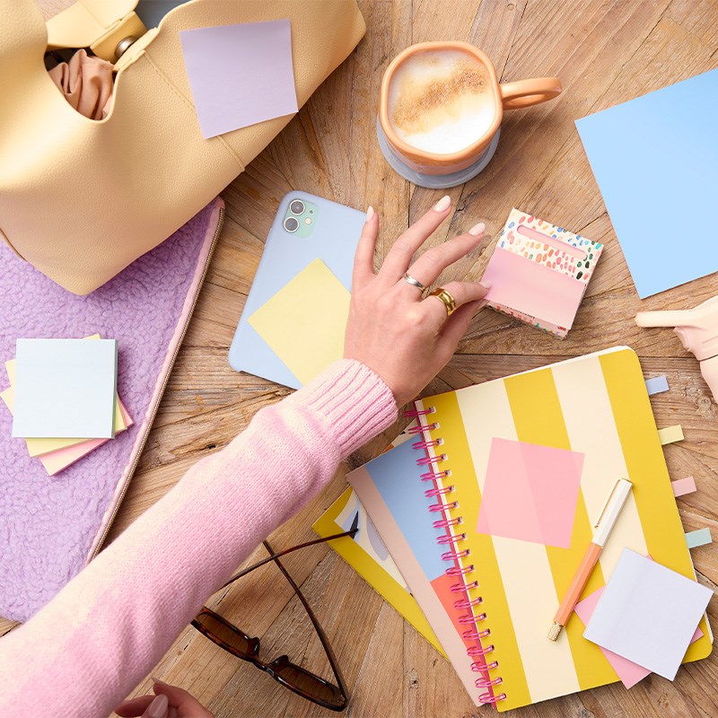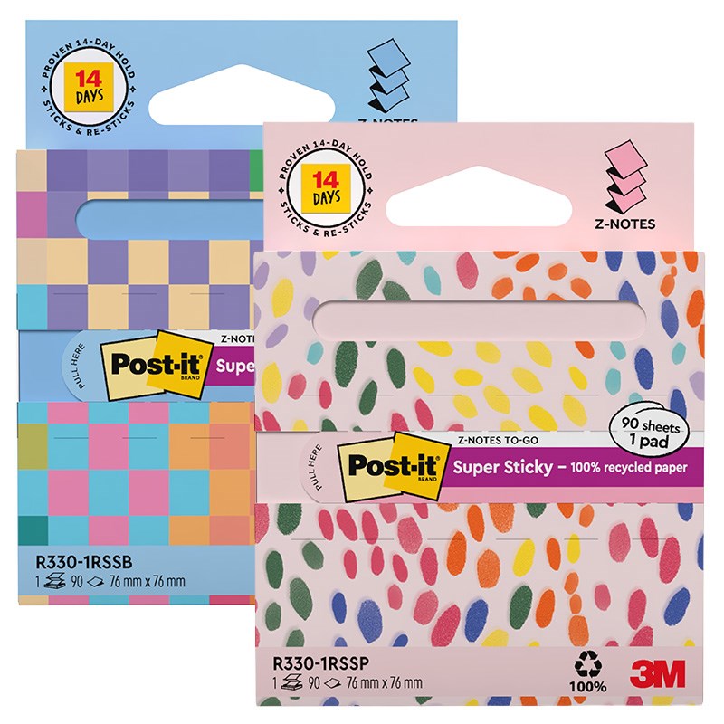Post‑it® Super Sticky Z‑Notes u pastelnim bojama su samoljepljivi listići dimenzija 76 × 76 mm s jačim ljepilom koji se čvrsto drže na papiru, ali se mogu premještati bez oštećenja površine. Z‑Notes format omogućuje da listić lagano odlijepite jednim potezom i odmah zabilježite bilješku, poruku ili podsjetnik. Listići su dobri za označavanje dokumenata, planera ili rokovnika i korisni su za organizaciju svakodnevnih obaveza. Pastelne boje unose uredan i suptilan izgled na stranicu i olakšavaju vizualno razlikovanje zadataka i informacija. Izrađeni su od 100% recikliranog papira, a pakiranje od recikliranog kartona. Oba materijala se mogu ponovno reciklirati. Papir je PEFC certificiran, što znači da dolazi iz odgovorno upravljanih, obnovljivih šuma. Na ovaj način možete organizirati bilješke i dokumente, a istovremeno birati proizvod koji vodi računa o okolišu.
