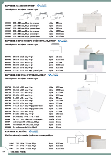 Kuverte vrećice s bočnim otvaranjem. Jednostavno ljepljenje pomoću uklonjive zaštitne vrpce. Dostupne razne dimenzije, gramature i pakiranja.