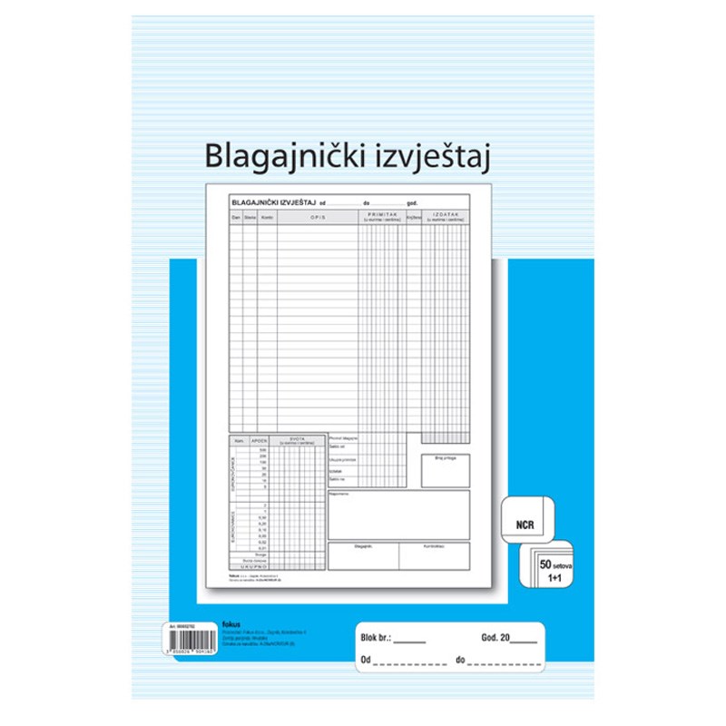 | F-A-28A/NCR | Blagajnički izvještaj A4, EUR / KOM |