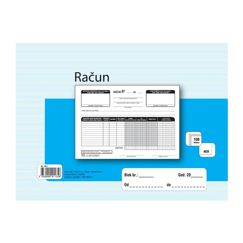 | F-A-641/NCR | Račun A5 (bezgotovinski) / KOM |