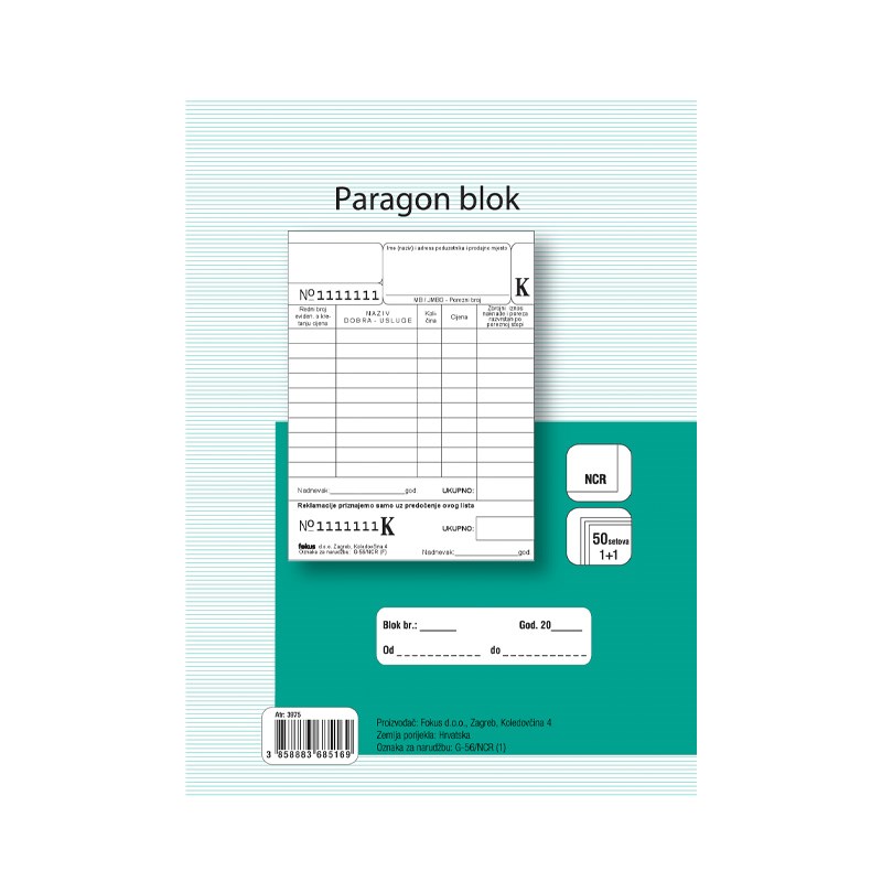 | O-VII-7A | Obračunski list paragon bloka / KOM |