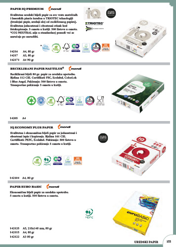 Ekonomičan bijeli papir za printanje na svim uredskim uređajima. Bjelina 146 CIE.