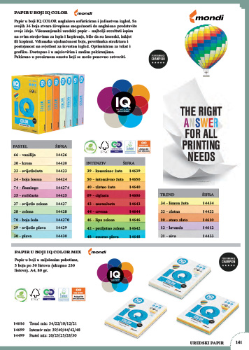 Ekspresivan papir formata A4 intenzivnih boja naglašava sofisticiran i jedinstven izgled. Višenamjenski uredski papir – najbolji rezultati ispisa na svim strojevima za ispis i kopiranje, bilo da su laserski, inkjet ili kopirni