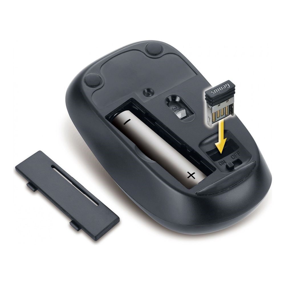 Genius bežični optički miš BlueEye - NX-7005. Udobnost i kontrola da ide gdje god vaš laptop ide. Možete ga koristiti na gotovo svim površinama, uključujući granitne površine, drvene stolove, pa čak i tepihe. Zaobljeni dizajn omogućuje korištenje s obje ruke i cjelodnevni rad. Pico prijemnik može biti pohranjen u tijelu miša, ili ostati u USB utoru računala. NX-7005 je dizajniran samo s jednom AA baterijom i prekidačem kako bi dodatno produljiti trajanje baterije.