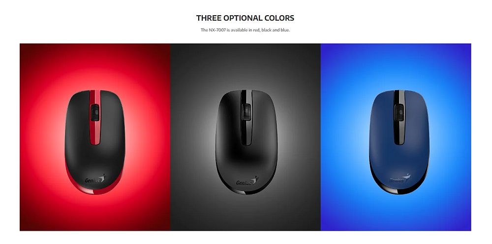 NX-7007 je bežični miš s 3 tipke i kotačićem i ima područje gumba malo niže kako bi vašem prstu bilo ugodno dok klikate, pomičete ili povlačite pokazivač miša po zaslonu.