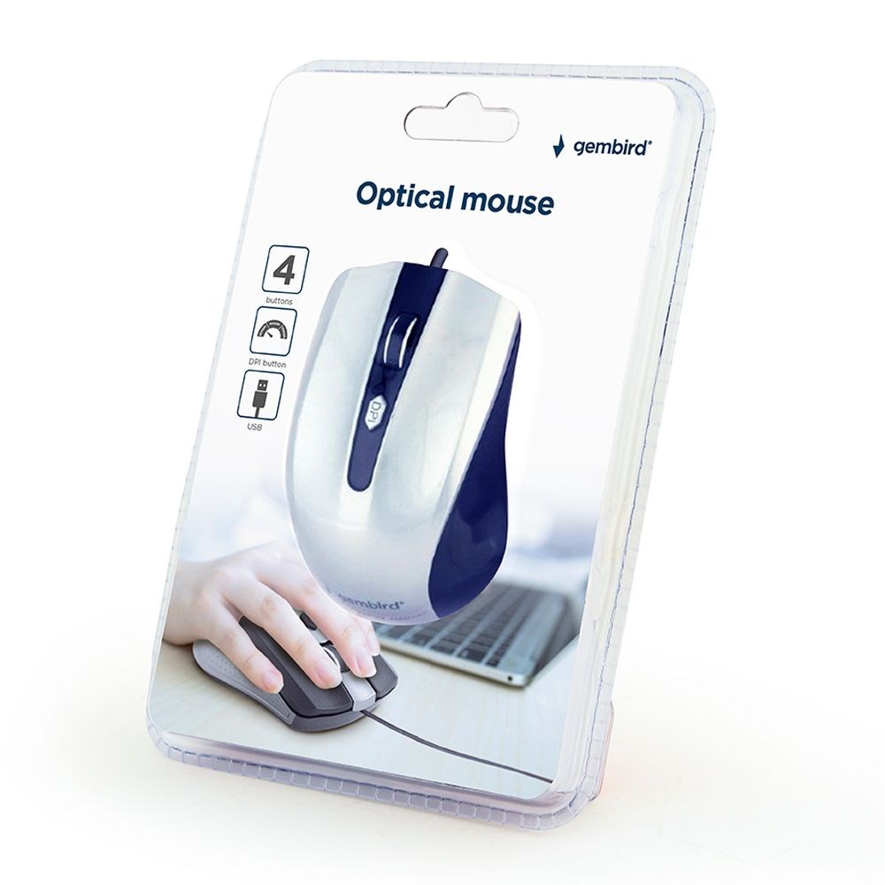 Optički miš s četiri tipke i kotačićem, koji se koristi s obje ruke. Kompaktan i lagan miš kojemu nije potreban instalacija i koji radi na većini podloga i nije mu potrebna podloga za miša. Optička rezolucija se može odabrati pomoću DPI tipke: 800/1000/1200 dpi.
