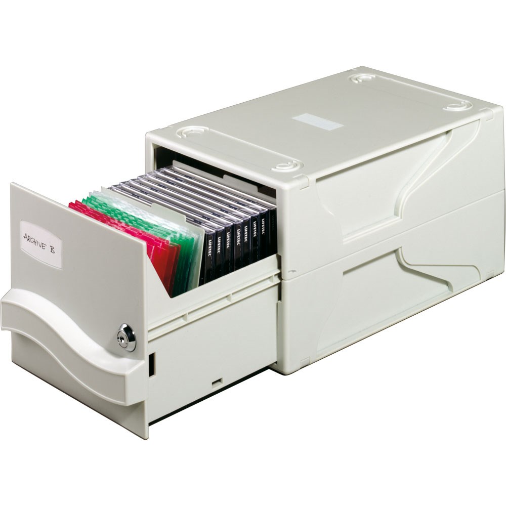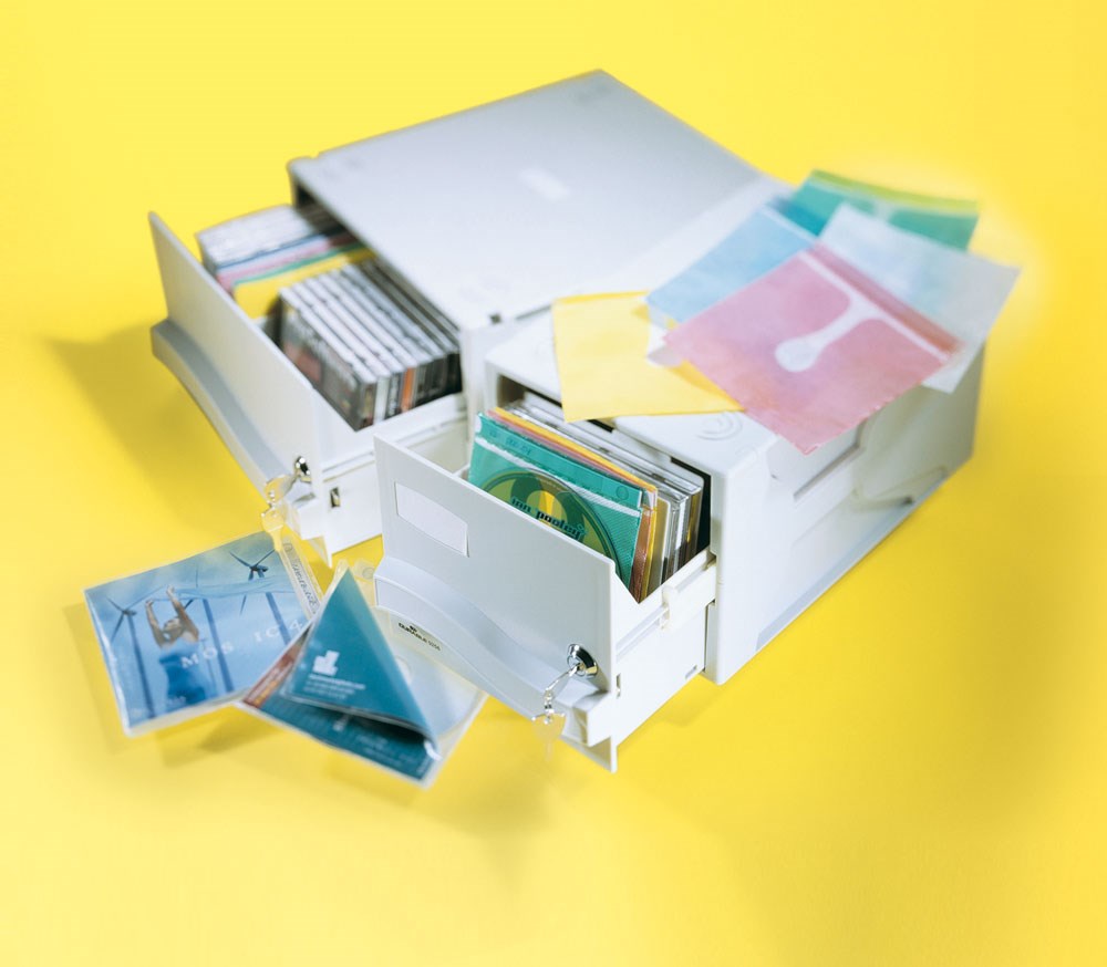 Mogućnost slaganja I i II jedne na drugu ili jedne pored druge. Za 26 CD-a s kutijom, 136 disketa 3,5", 45 ZIP disketa, 30 mini cartridge ili kombinirano. 8 razdjelnih pregrada, etikete za sadržaj. Dimenzije: 290x325x165 mm.