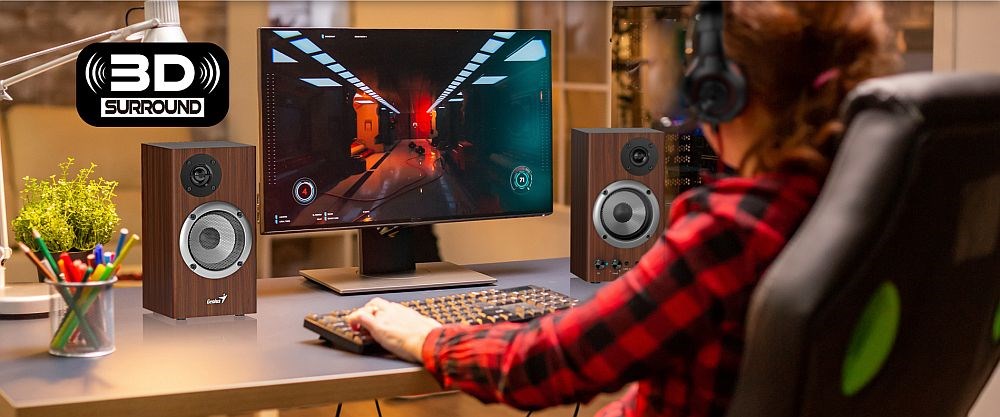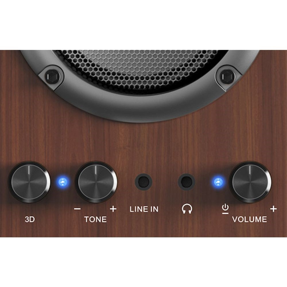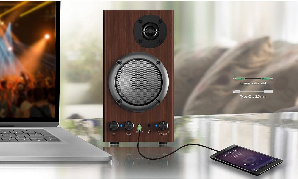 Dvosistemski drveni zvučnici s izlazom od ukupno 16W s 3D surround efektom za poboljšanje šireg zvučnog polja. S ugrađenim visokotoncima, pruža kristalno jasne visoke tonove u malom prostoru. Sustav kombinira i 3" baseve s poboljšanim dizajnom, koji pružaju jake duboke tonove