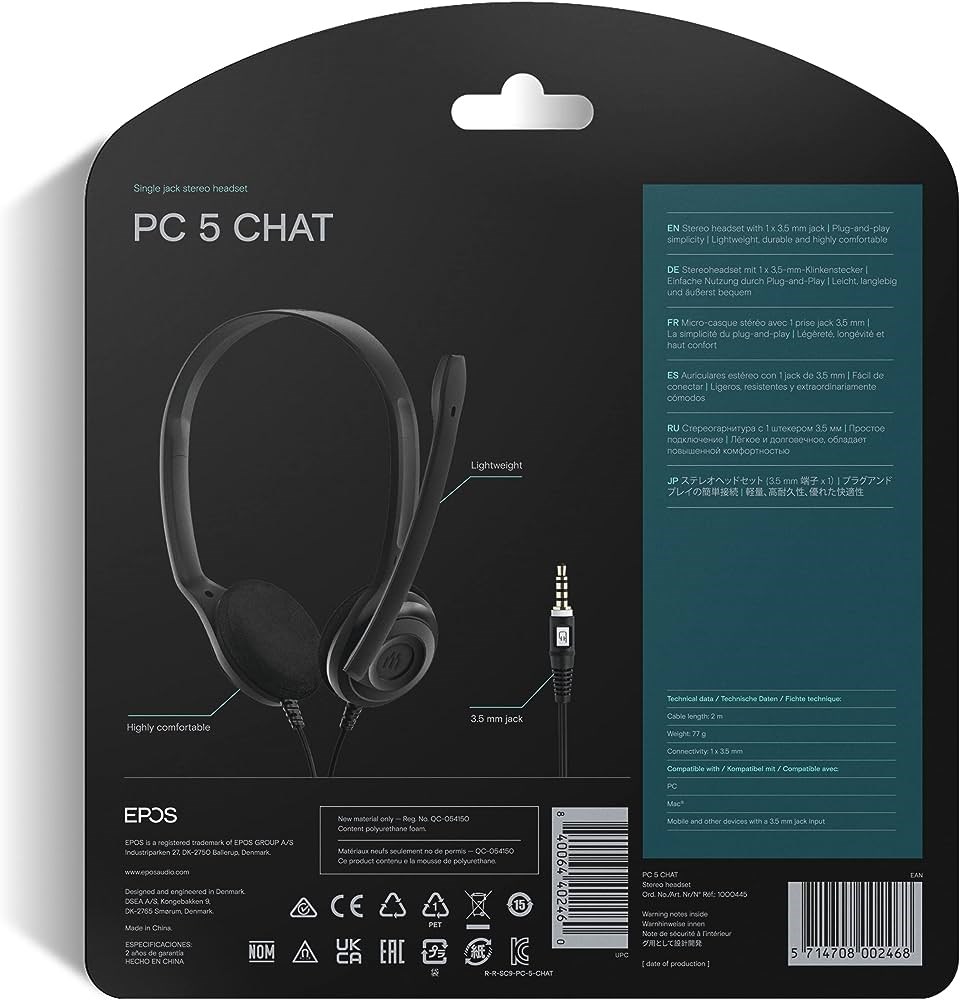 PC 5 Chat stereo slušalice savršene za rad od kuće, e-učenje i održavanje kontakta, donose zvuk visoke kvalitete i jednostavnost korištenja na niz platformi uključujući PC, Mac, mobilne telefone i tablete.