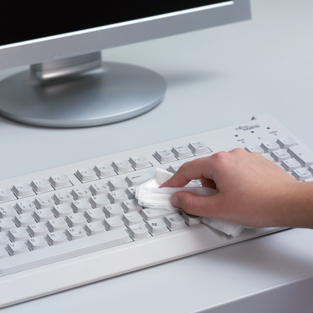 Vlažne maramice u trajnoj kutiji za čišćenje uredske opreme. Idealno za čišćenje tvrdih površina poput radnih stolova, tipkovnica, miševa, kućišta računala, pisača, telefona i drugo.