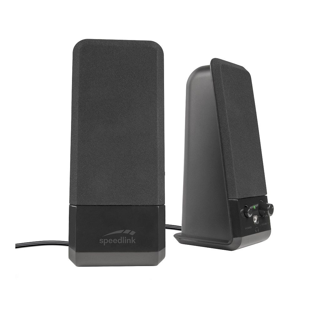 Stereo 2.0 zvučnici. Iznimno su tanki, odlični u kombinaciji sa LCD monitorima. Izlazna snaga 1,2W RMS. Kontrola glasnoće na zvučniku. Utičnica za slušalice 3,5 mm s kontrolom glasnoće, 3.5mm konektor za spajanje sa PC ili MP3 Dimenzije: 76x90x165mm