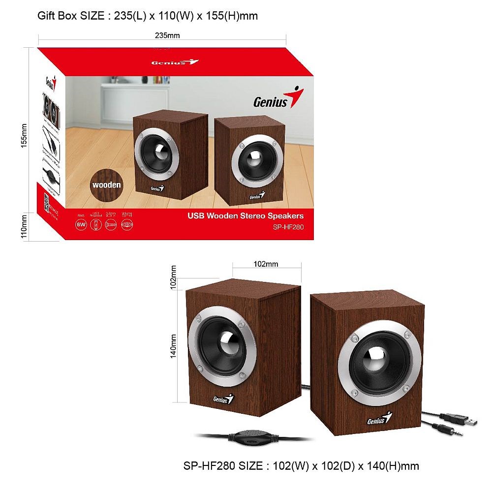Stereo 2.0 zvučnici, sa drvenim kućištem za savršen zvuk. Drveno kućište, jednostavnog dizajna, kompaktno, ali elegantno.