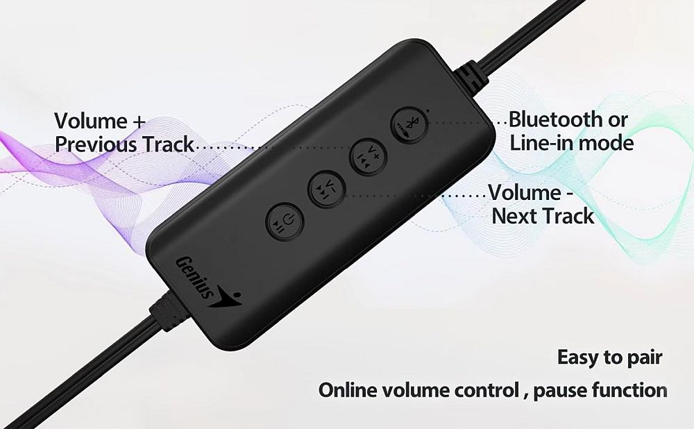 Kontrolna kutija na žici služi za jednostavan pristup Bluetoothu uparivanju, podešavanju glasnoće te pokretanju te pauziranju muzičkog prijenosa.
