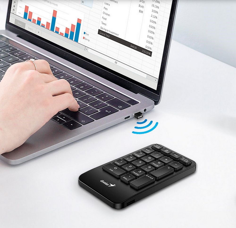 Numpad 1000 je tiha, USB numerička bežična tipkovnica, koja je idealna za upotrebu kod kuće ili u uredu.