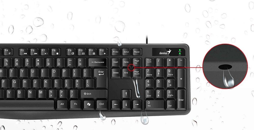 Tekućina se izravno cijedi iz tipkovnice, štiteći je i uklanjajući brigu o slučajnom prolijevanju.