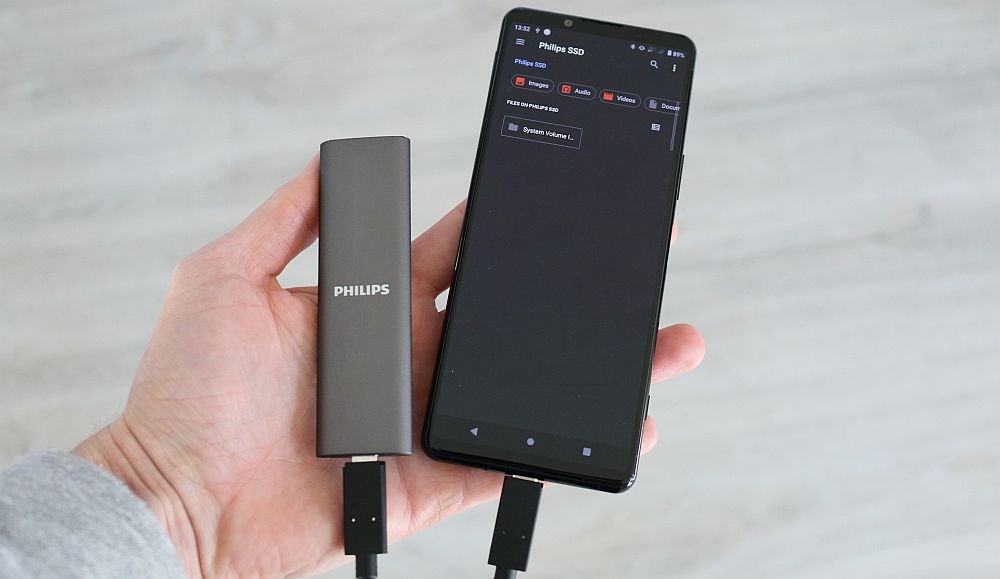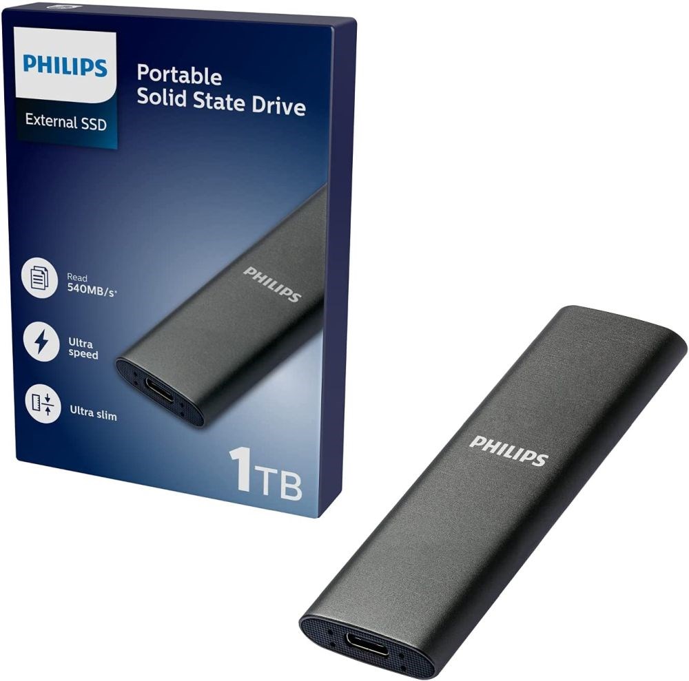 Philips prijenosni SSD spaja ultra performanse s vrlo kompaktnim aluminijskim svemirski sivim kućištem.
