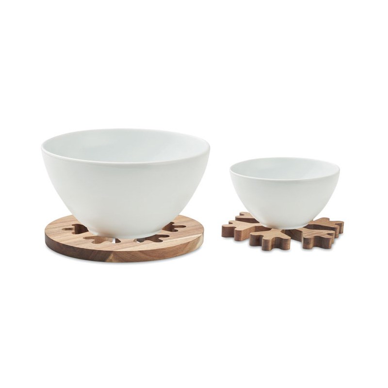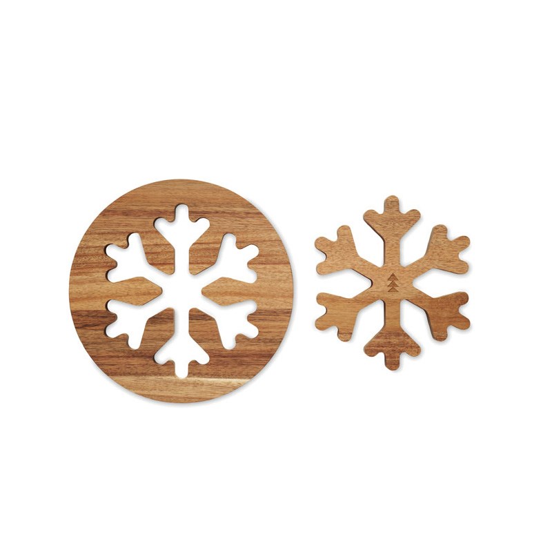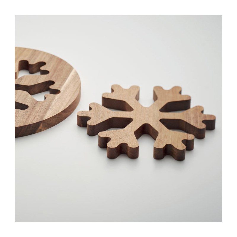Set od 2 držača za lonce od bagremovog drveta s dizajnom snježne pahulje.