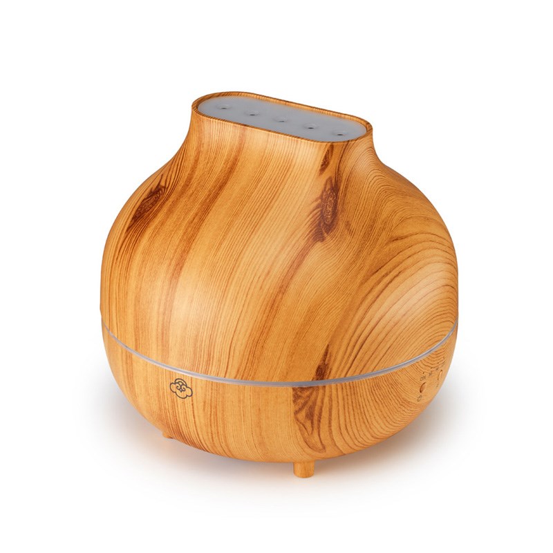 Ultrazvučni aroma difuzor s kapacitetom vode od 400 ml. Prekrasno dizajniran ovlaživač prostora od umjetnog drva. Mogućnost 13-satnog neprekidnog rada ili do 26 sati s prekidima. Dodajte vodu i par kapi ulja i uključite ga. Nježna maglica opustit će vas i ispuniti energijom.
