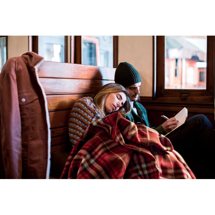 Deka od flisa s kariranim uzorkom u RPET putnoj vrećici.