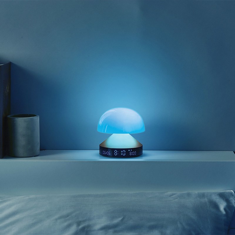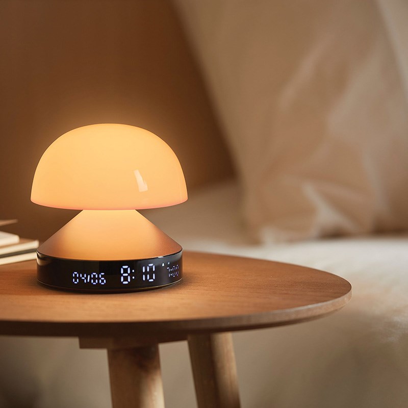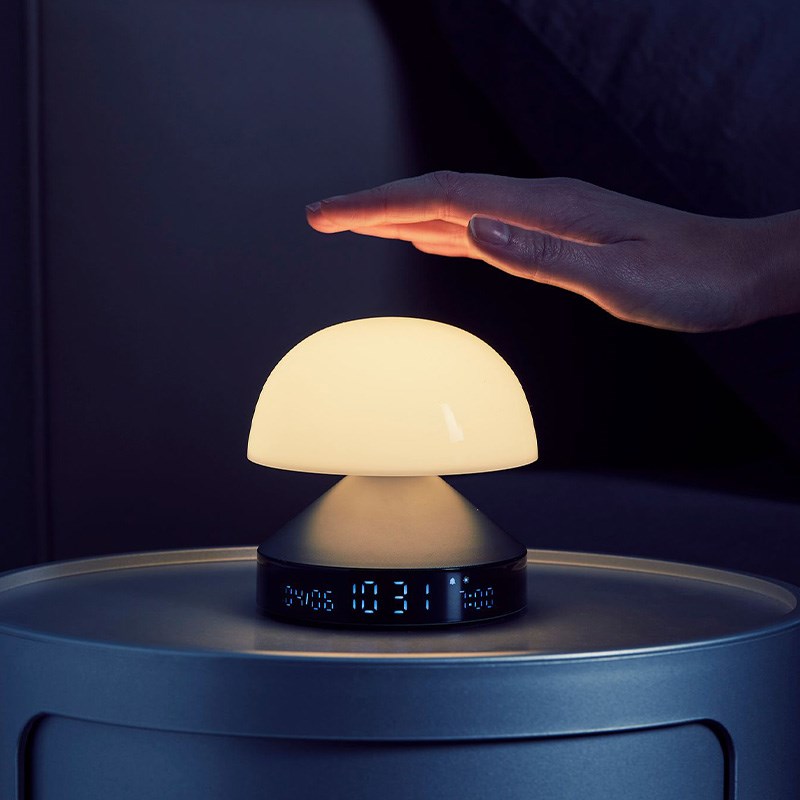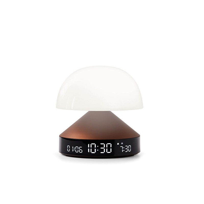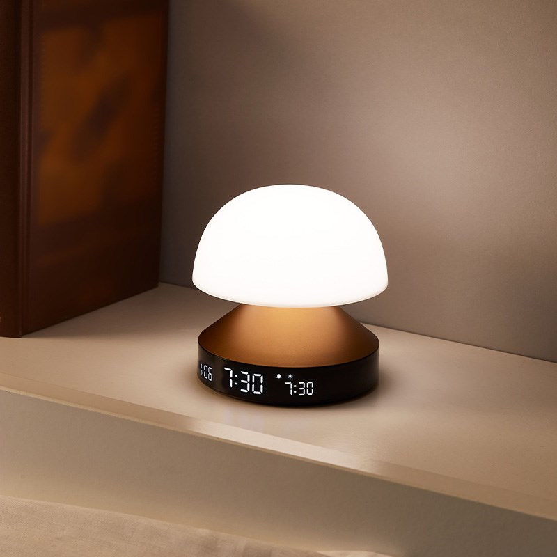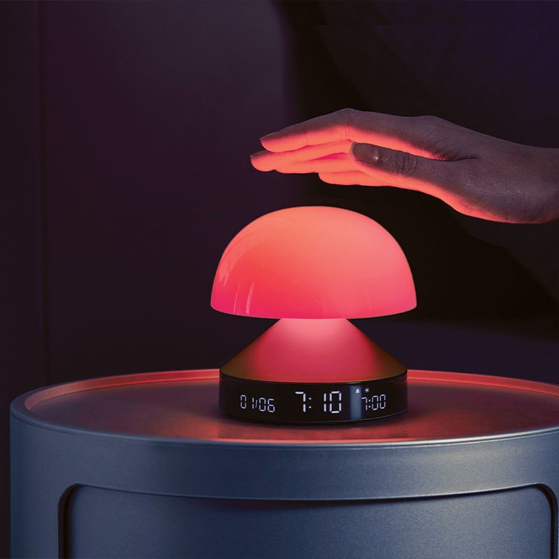 Mina Sunrise je 3-u-1 lampa s efektima izlaska i zalaska sunca, budilicom i višebojnim osvjetljenjem. Nježno se probudite zahvaljujući progresivnom simulatoru dnevnog svjetla u kombinaciji s prirodnim zvukovima u željeno vrijeme. Koristite funkciju zalaska sunca kako biste mirno zaspali. 30 minuta prije postavljenog vremena buđenja, tamnoplavi tonovi postupno se mijenjaju u toplu bijelu kako bi blokirali melatonin i pomogli vam da ustanete prirodno, dobro raspoloženi i odmorni. Noću, kada je uključen način zalaska sunca, Mina Sunrise prebacuje se s narančastog na crveno svjetlo kako bi pomogla spavanju. Sa svojim kompaktnim oblikom, aluminijskom bazom i visokokvalitetnim zaslonom, Mina Sunrise dizajnirana je da s njim bude lako komunicirati. Pritiskom na vrh svjetiljke uključit ćete/isključiti svjetlo, odabrati između 9 LED boja, prilagoditi svjetlinu ili zaustaviti alarm koji je u tijeku.
