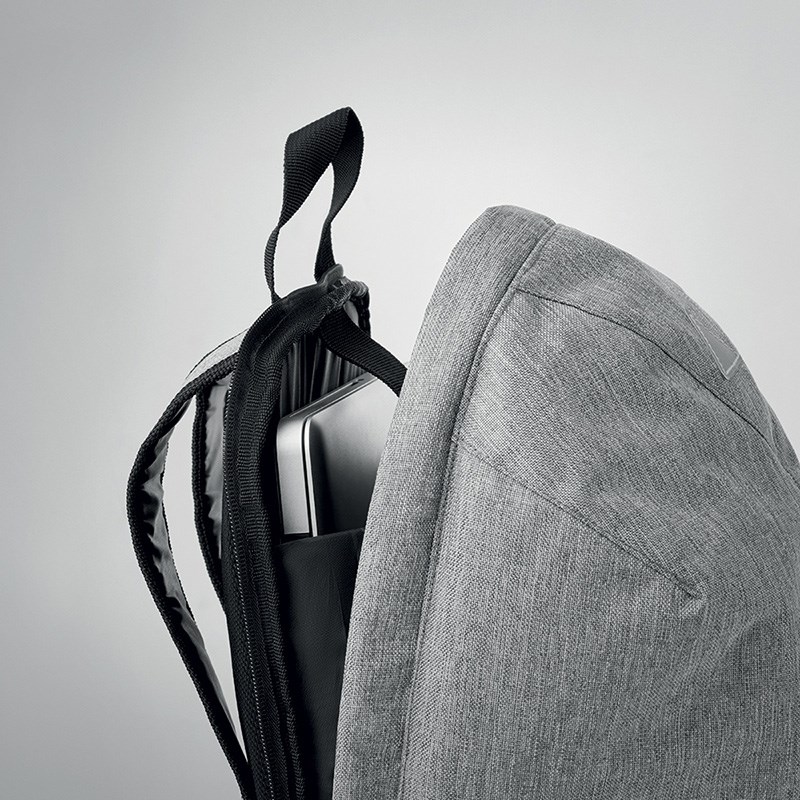 Ruksak od 600D poliestera, vanjski džep s patentnim zatvaračem. Glavni odjeljak s cifom. Dimenzije: 26x43x13 cm.
