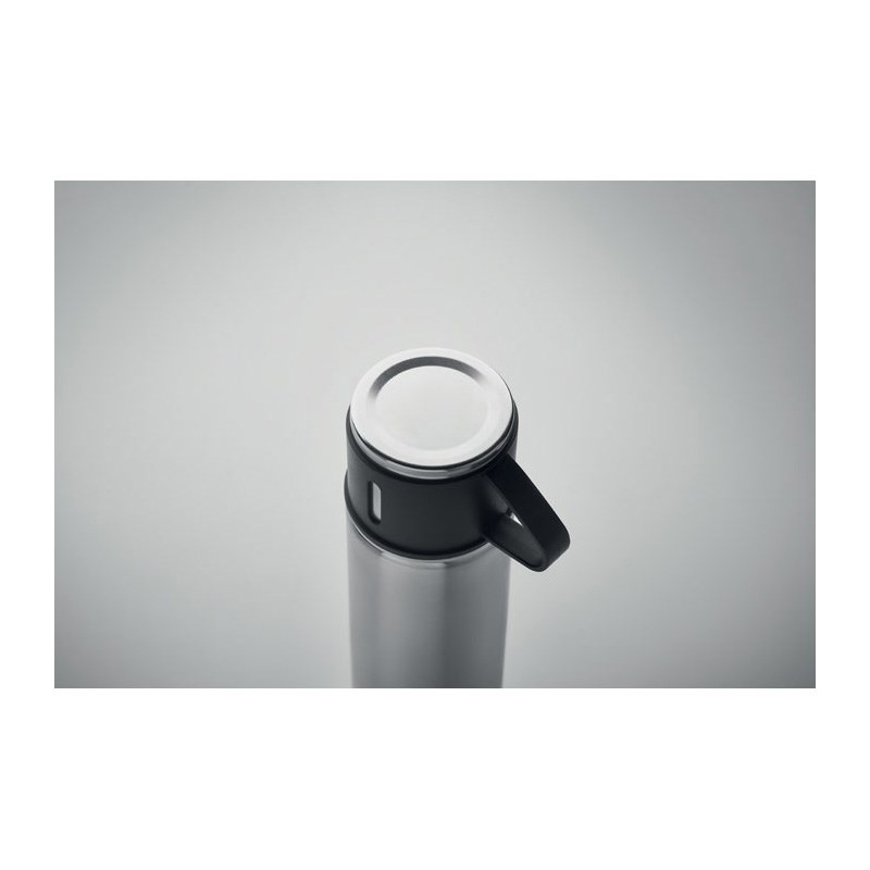 Dvoslojna vakuumska boca od nehrđajućeg čelika s poklopcem za šalicu koja ne curi. Kapacitet: boca 420 ml, šalica 150 ml.