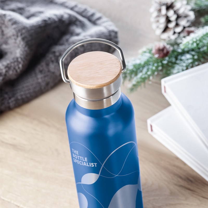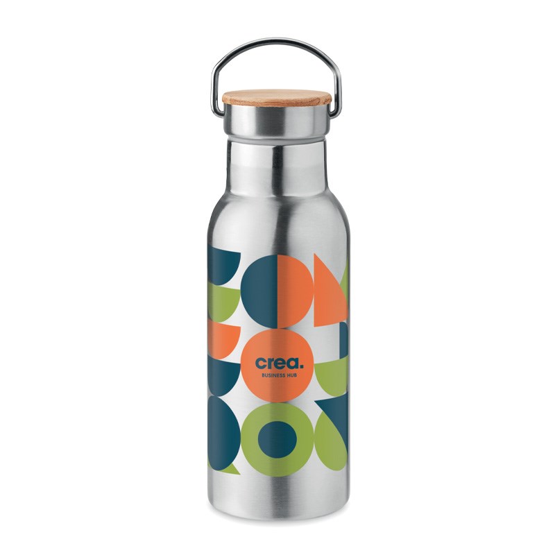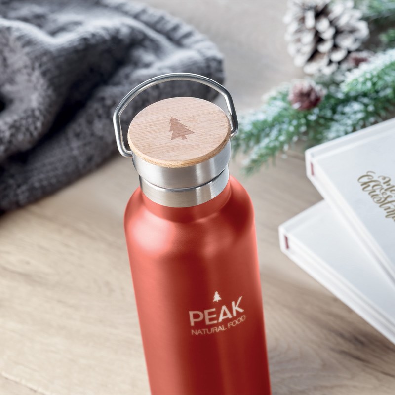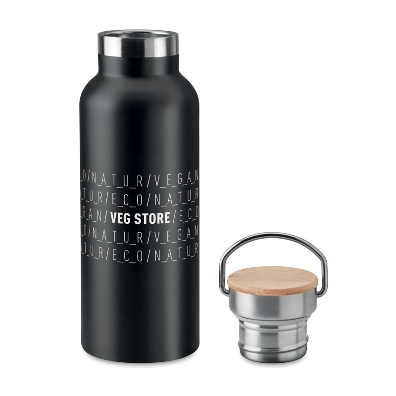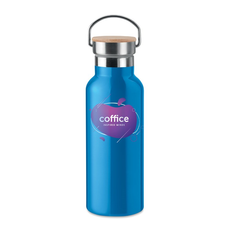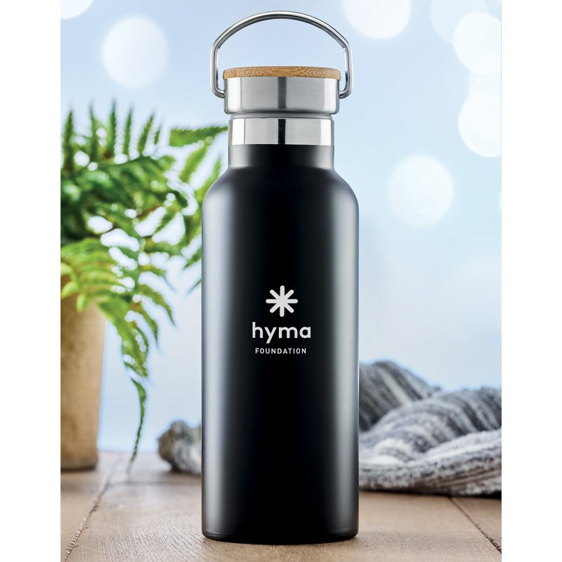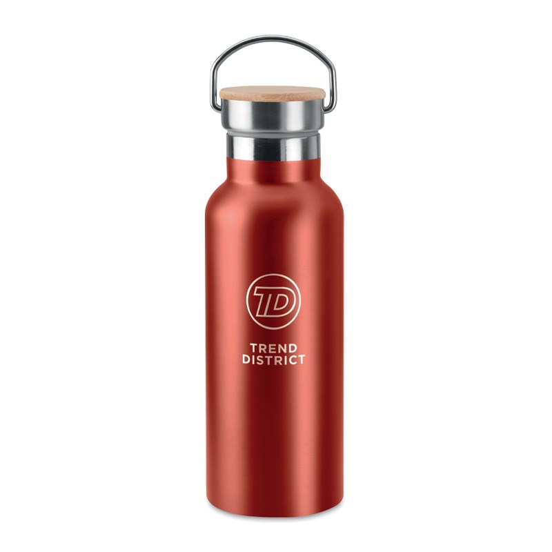Dvostruka stijenka, nehrđajući čelik, 500 ml, poklopac od bambusa. Dimenzije o7x21 cm.