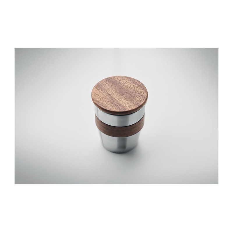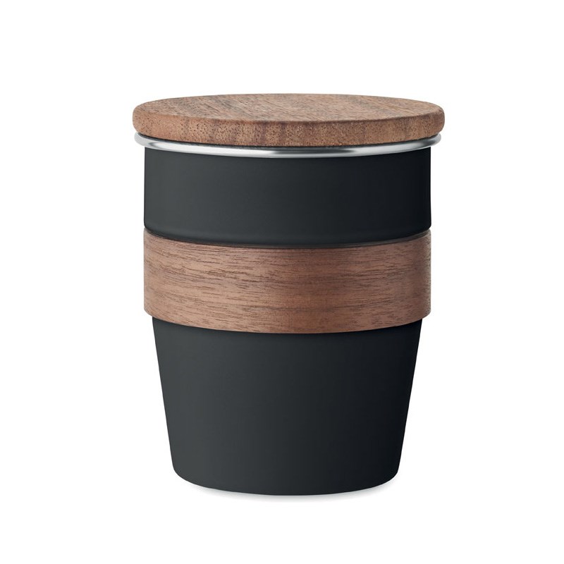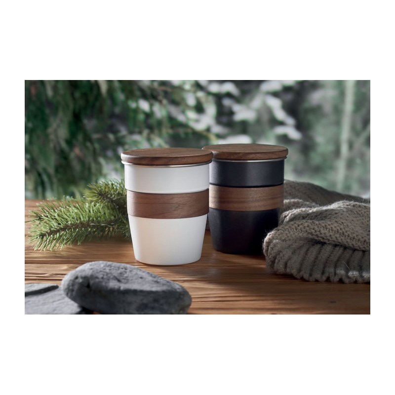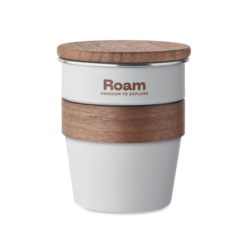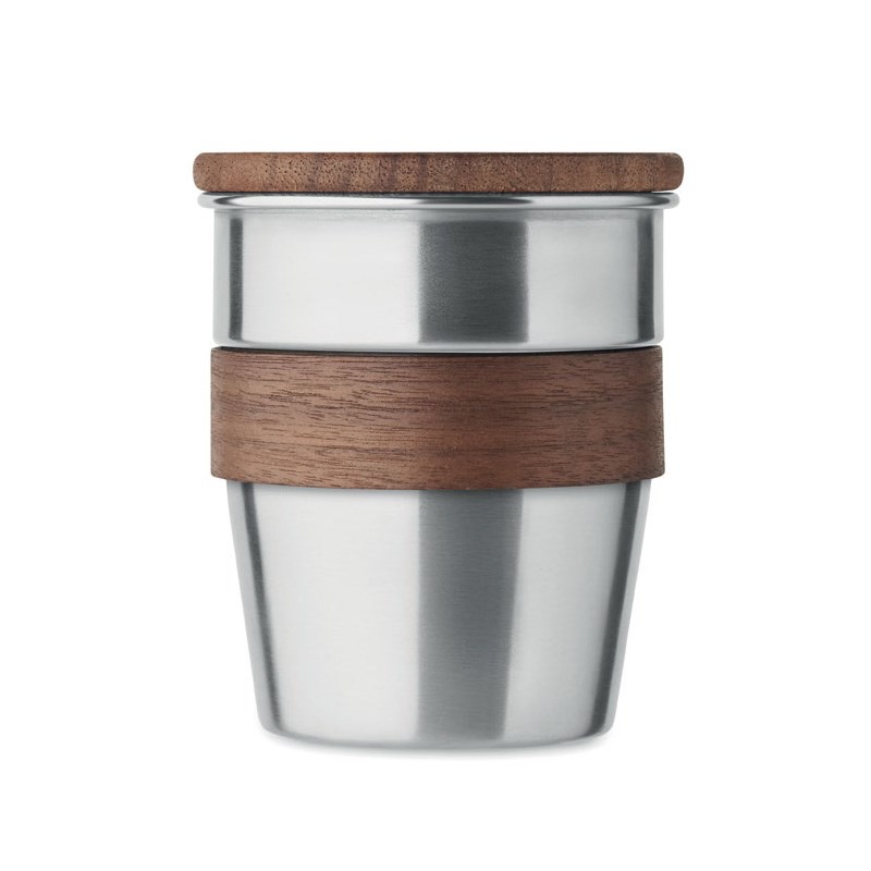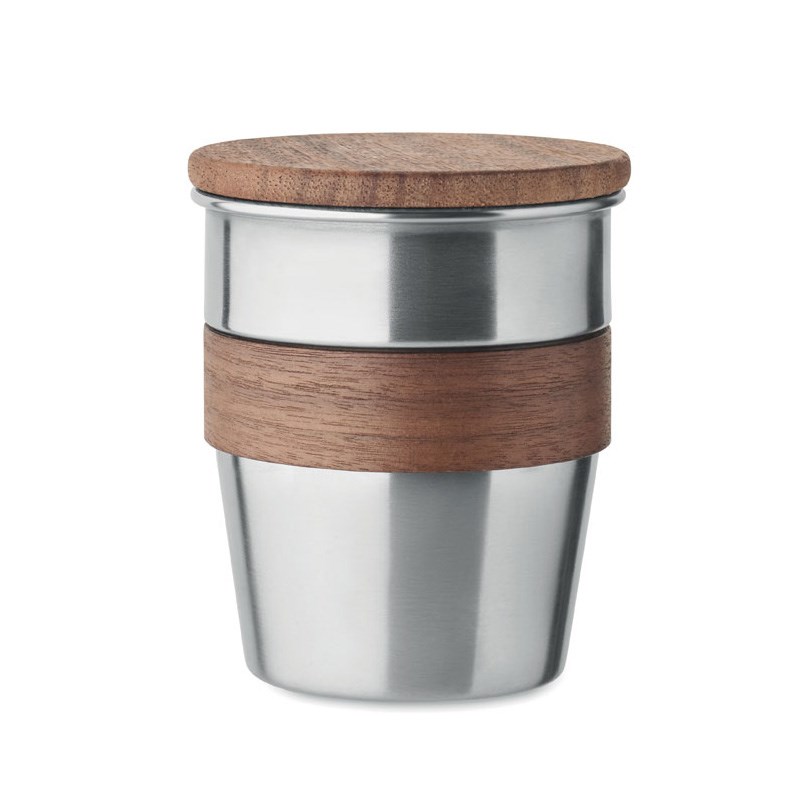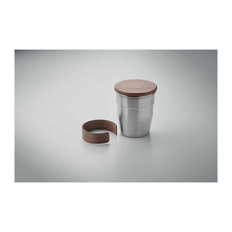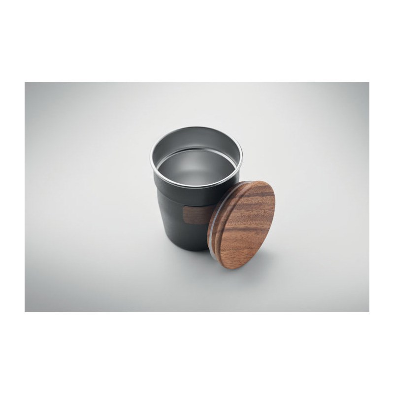 Termos čaša s jednom stijenkom od recikliranog nehrđajućeg čelika i poklopcem od orahovine.
