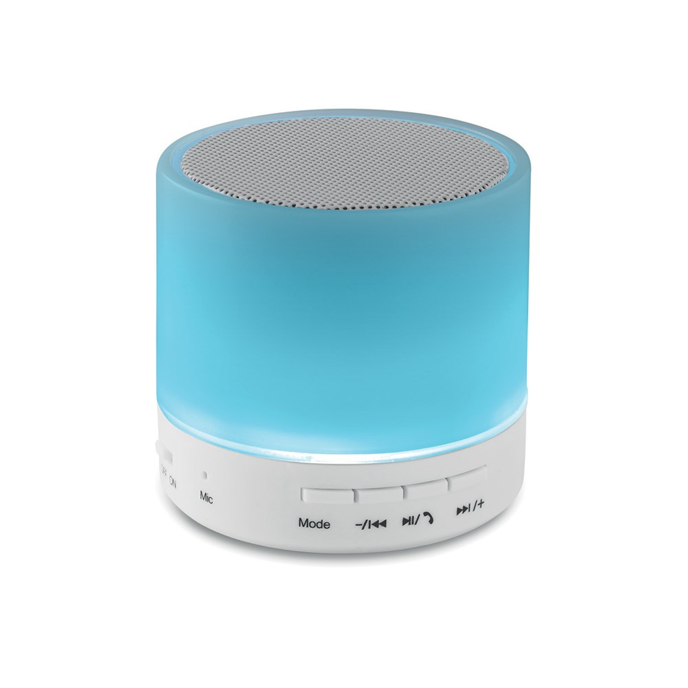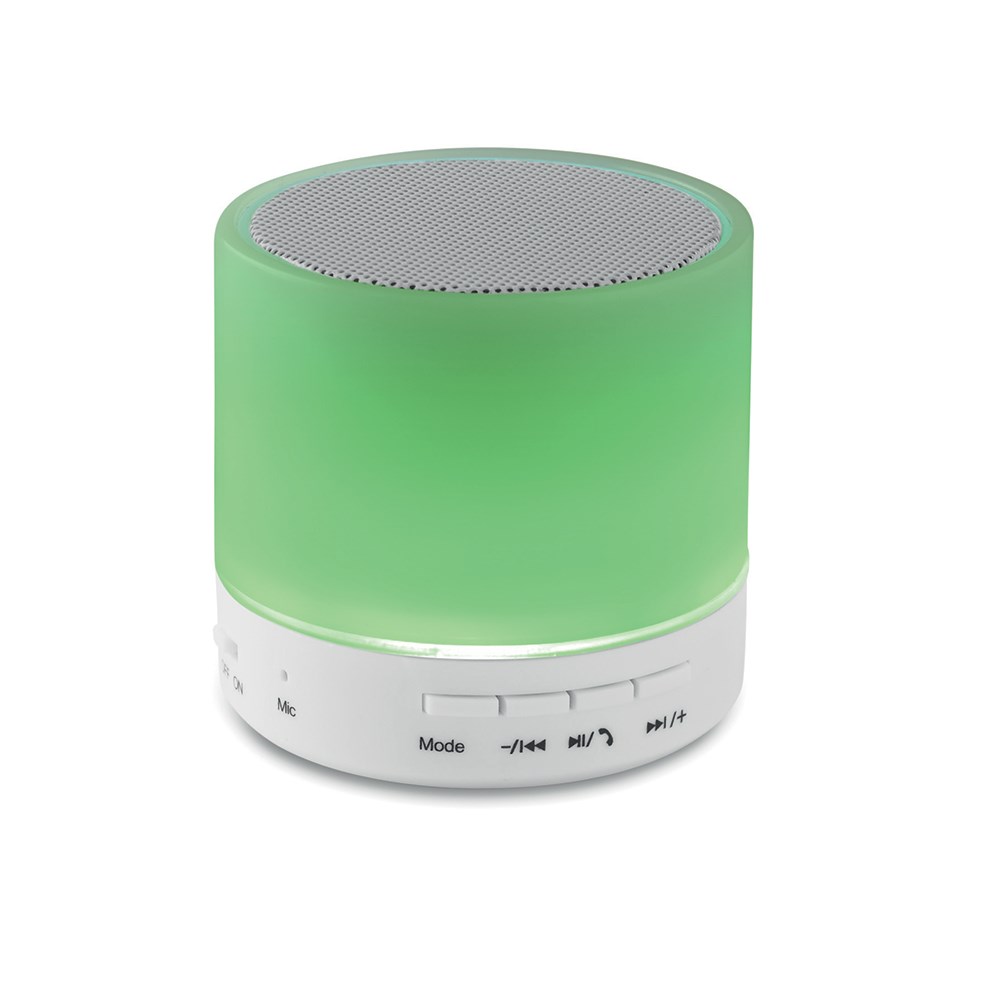 2.1 Bluetooth zvučnik s LED svjetlosnim signalom, 3 boje mijenjaju svjetlost. Sadrži punjivu litijsku bateriju od 450 mAh, priključak SD kartice i AUX / USB kabel. Handsfree funkcija poziva. Izlazni podaci: 3W, 4 Ohm.