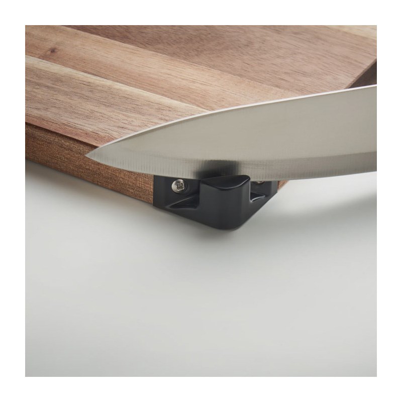 Daska za rezanje od bagremovog drveta s oštrilom za noževe.