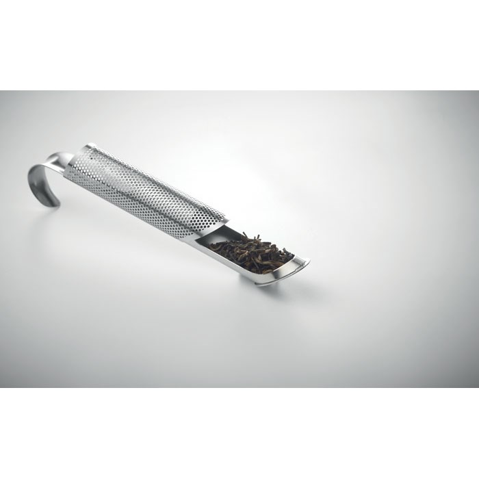 Set infuzera za čaj od cijevi od nehrđajućeg čelika za višekratnu upotrebu u pamučnoj vrećici. Uključuje filtar za čaj s kompaktnom i zakrivljenom kukicom koja mu omogućuje da visi preko ruba šalice i četku za čišćenje.