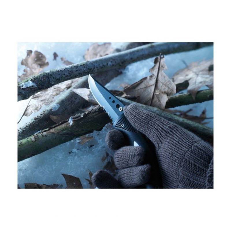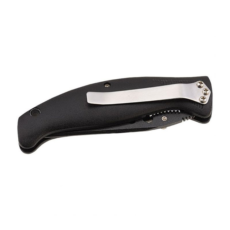 Nož džepni, sklopivi s plastičnom ručkom, sigurnosnom bravom i kopčom za remen od nehrđajućeg čelika i plastike. Pakiran u poklon kutiji. Dimenzije sklopljenog noža 11,4x3,6x1,2 cm.