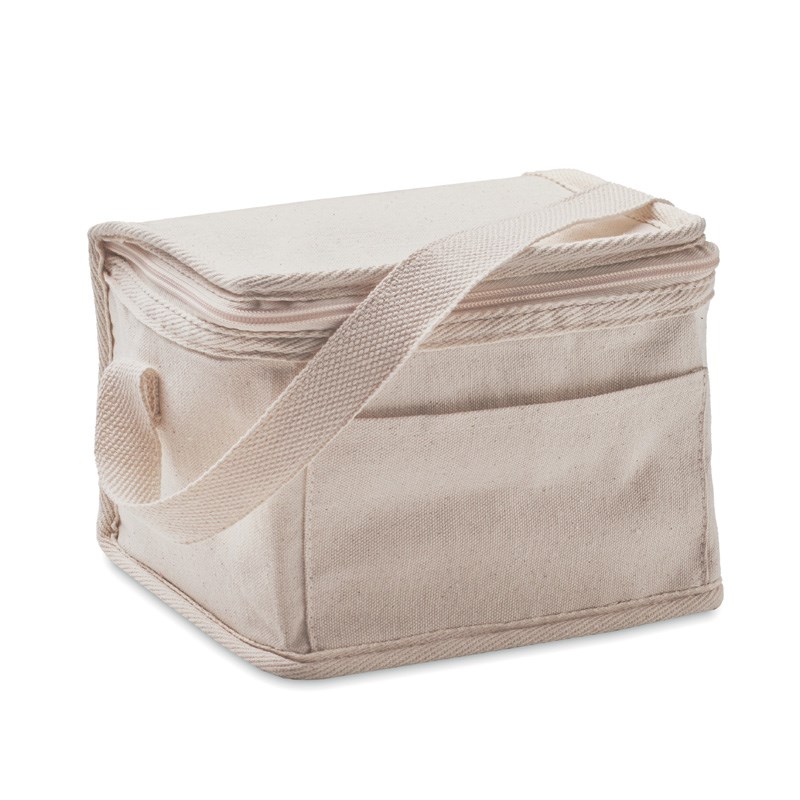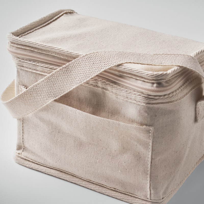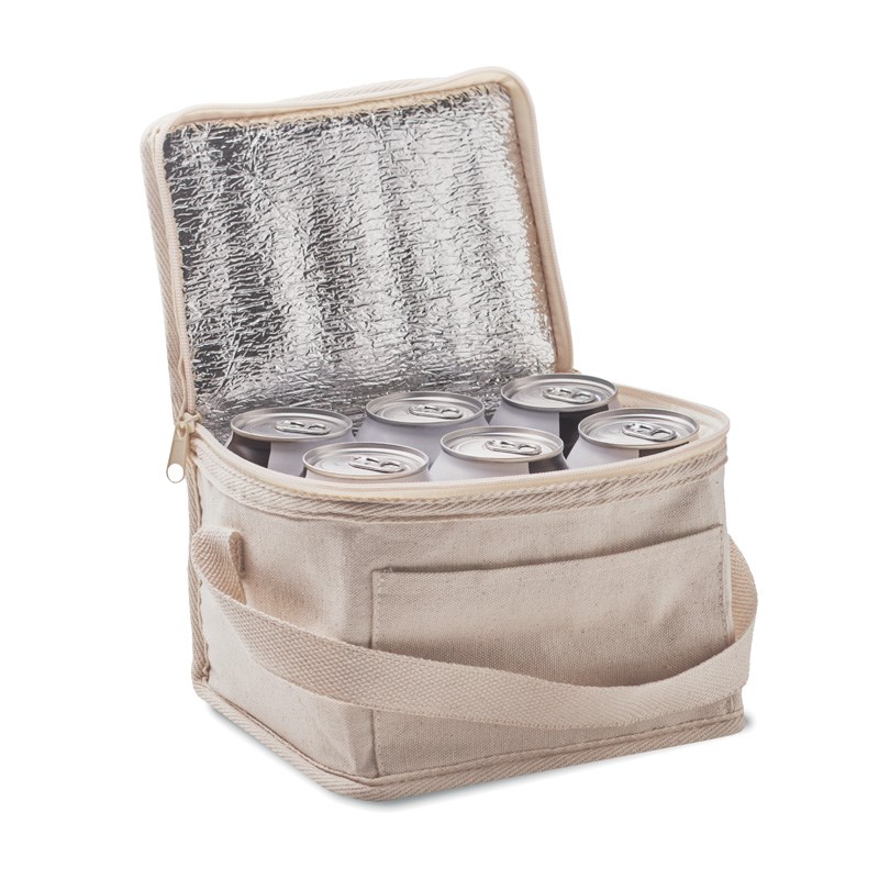 Pamučna rashladna torba 280 gr/m² s prednjim džepom. 3 mm izolacijska aluminijska laminirana folija. Kapacitet: 3 L.
