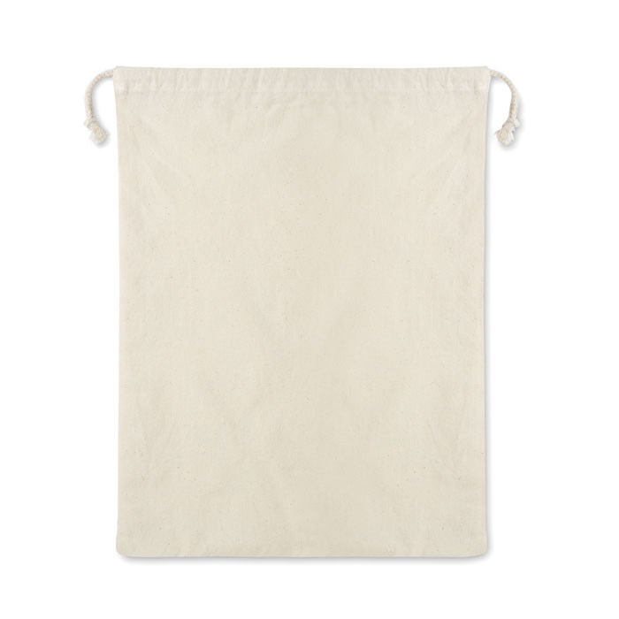 Vrećica za hranu za višekratnu upotrebu. Jedna strana je od pamuka (140gr/m²), a druga je od mrežastog pamuka (110gr/m²). Zatvaranje uzicom. Proizvedeno prema certificiranom standardu za korištenje štetnih tvari u tekstilu.