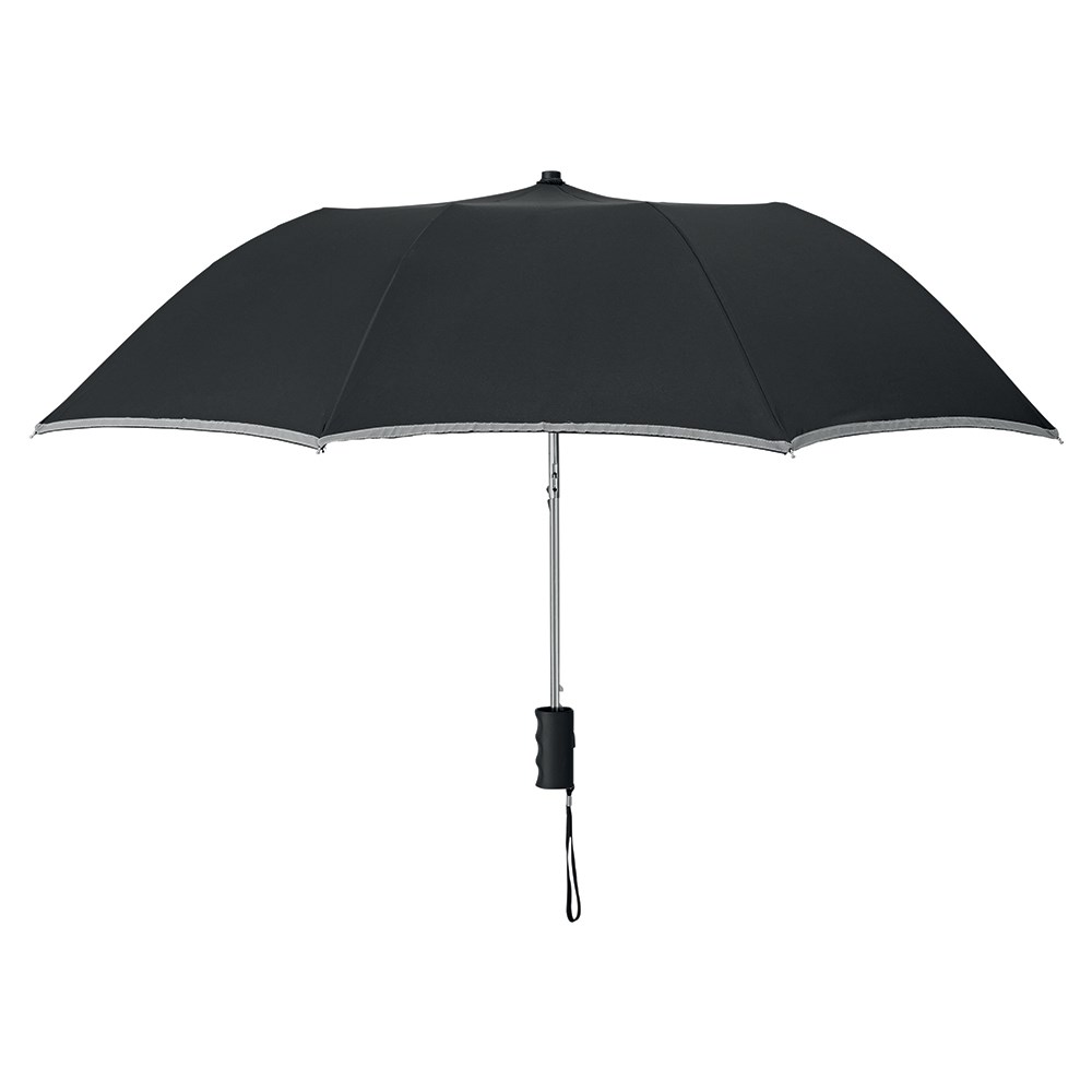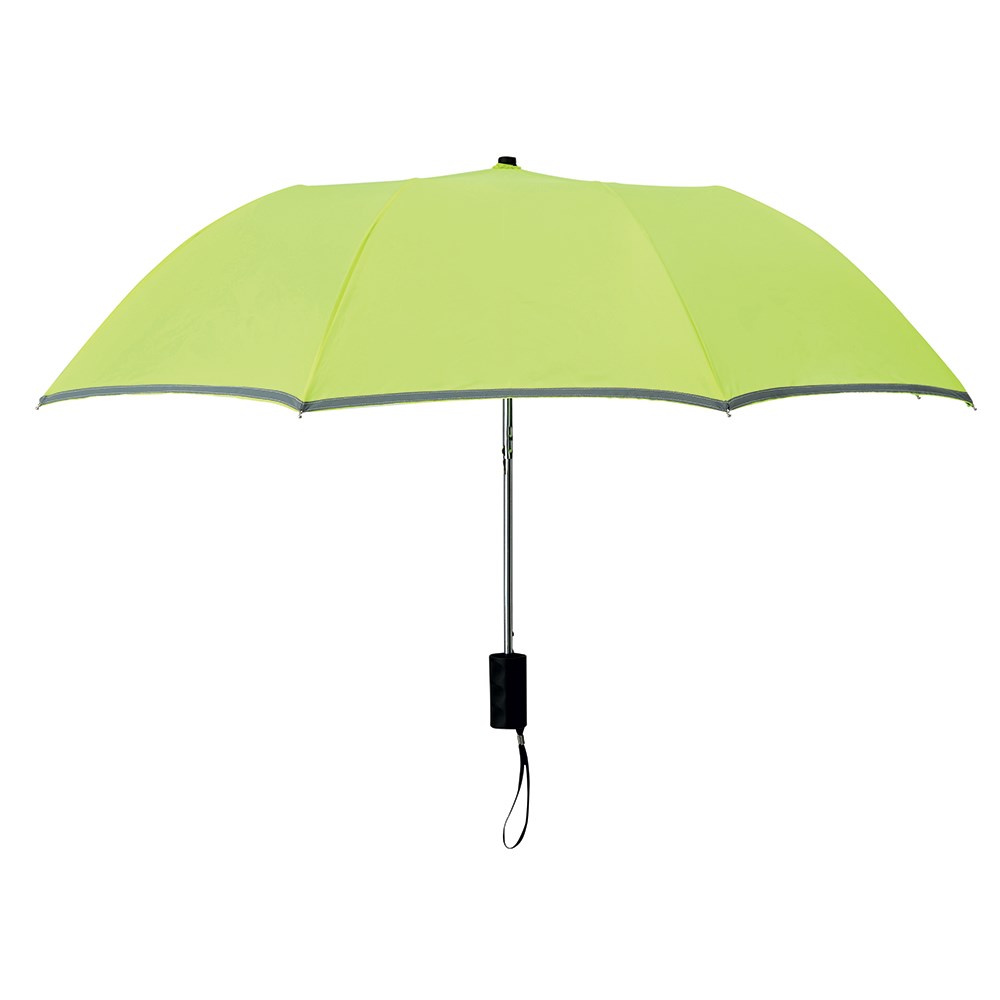 Kišobran sklopivi, neon boje s reflektirajućim rubom. Pocinčana konstrukcija. Crna plastična drška, navlaka s trakama. Ručno zatvaranje. Dimenzije:53,5cm.