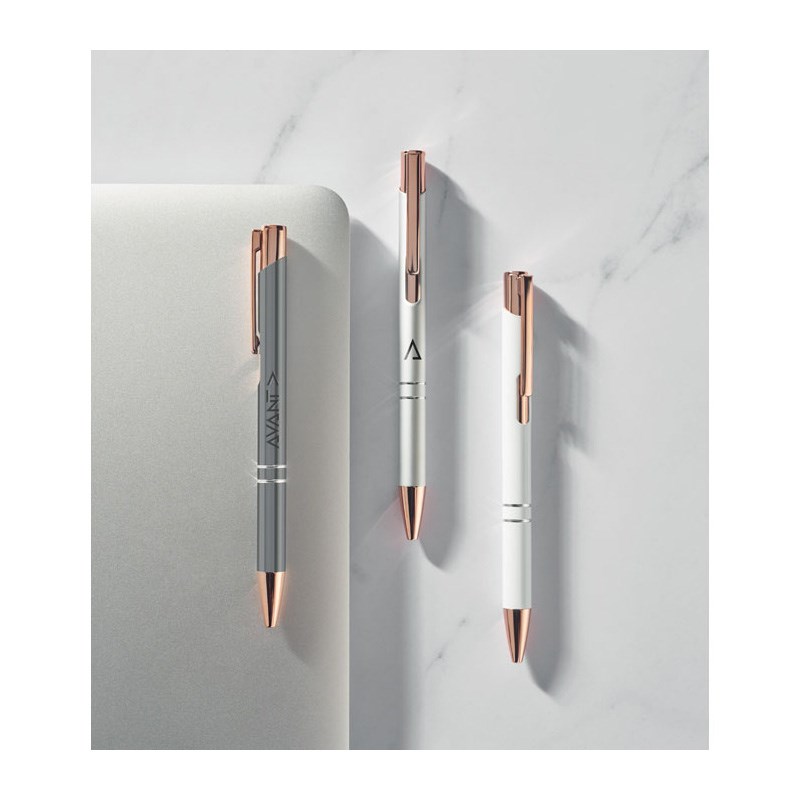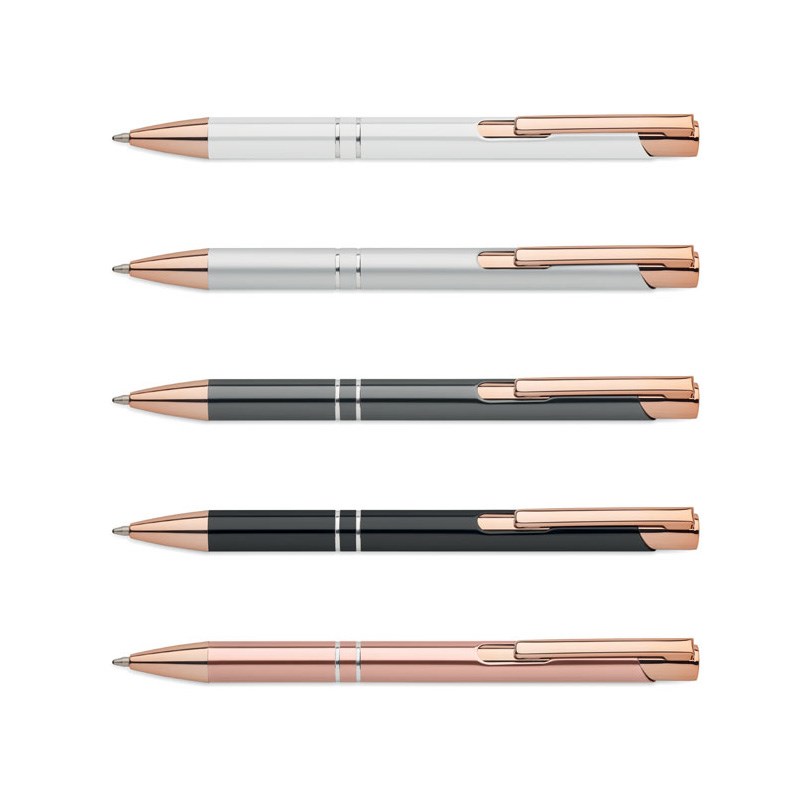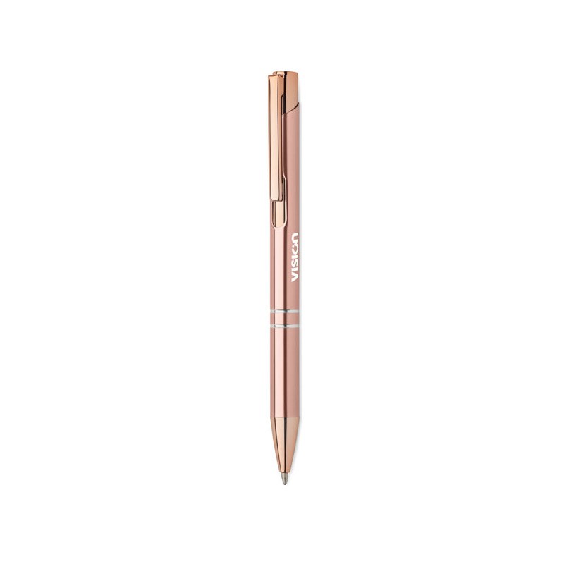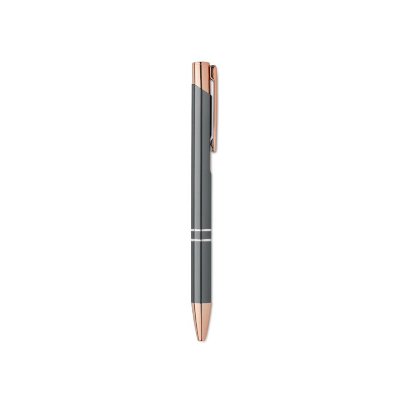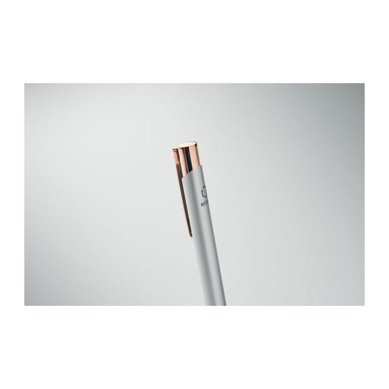 Kemijska olovka s gumbom od recikliranog aluminija. Plava tinta.