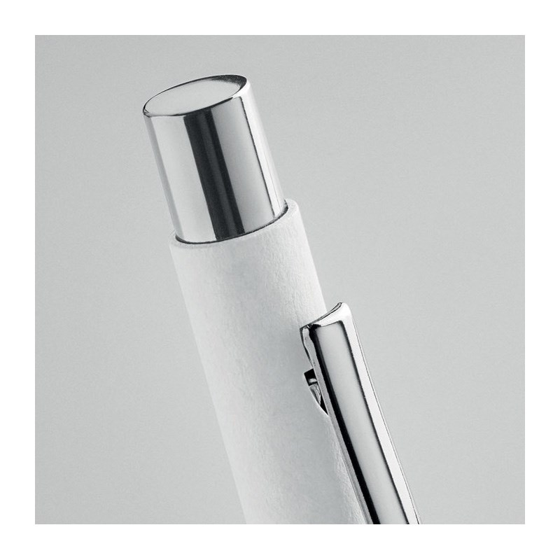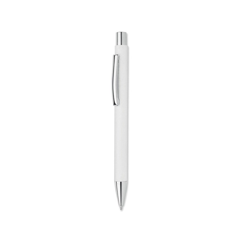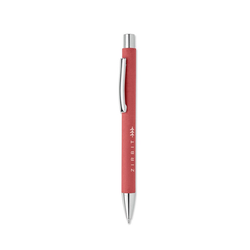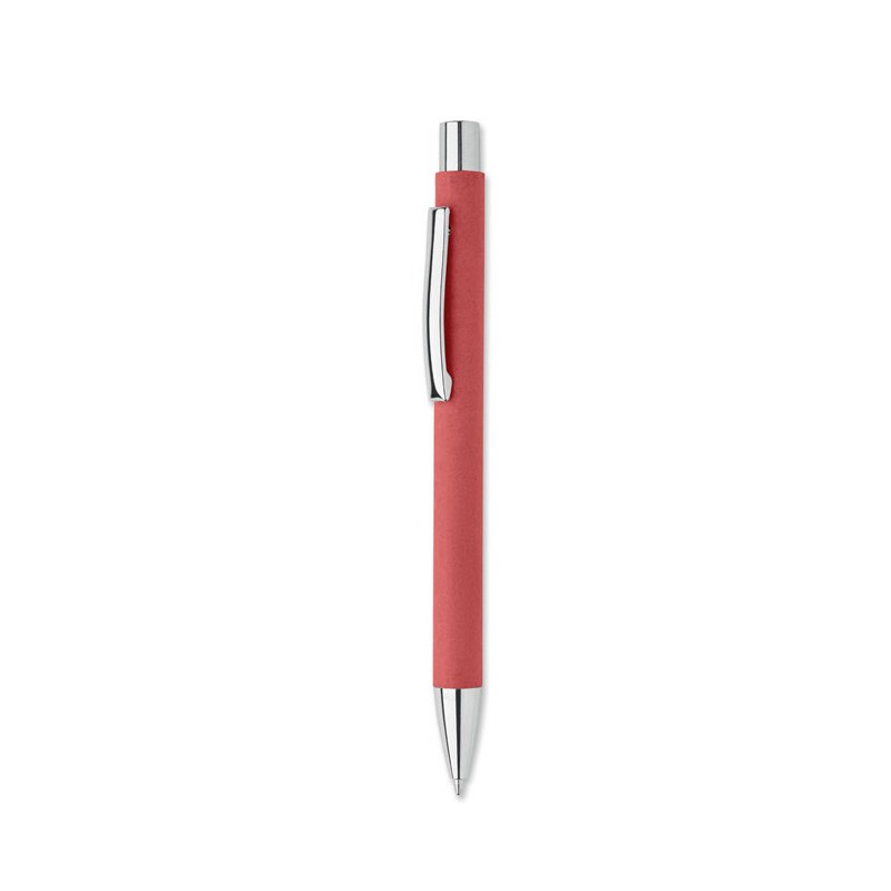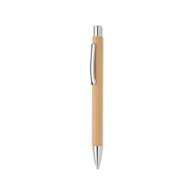 Kemijska olovka od recikliranog papira i metalne kopče te plastičnim dodacima. Plava tinta.