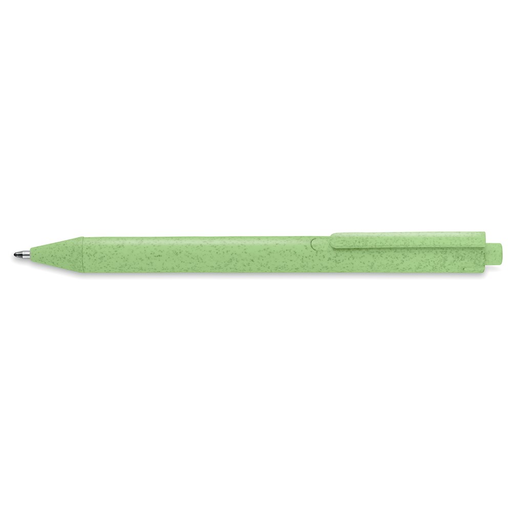 Kemijska olovka s tijelom od ekološke kombinacije PP plastike (50%) i slame (50%). Plavi ispis. Dimenzija: o1x13,9 cm.