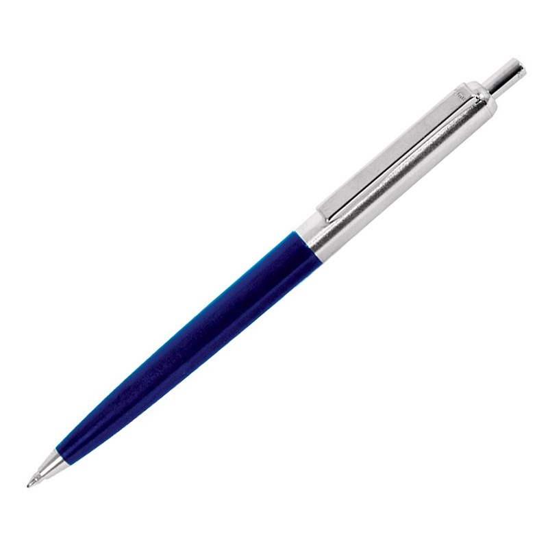 Kemijska olovka s metalnom klipsom i metalnim vrhom olovke. Debljina uloška: 0,4 mm. Plavi ispis.