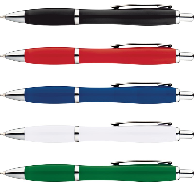 Kemijska olovka s metalnim vrhom i klipsom. Plastično tijelo.