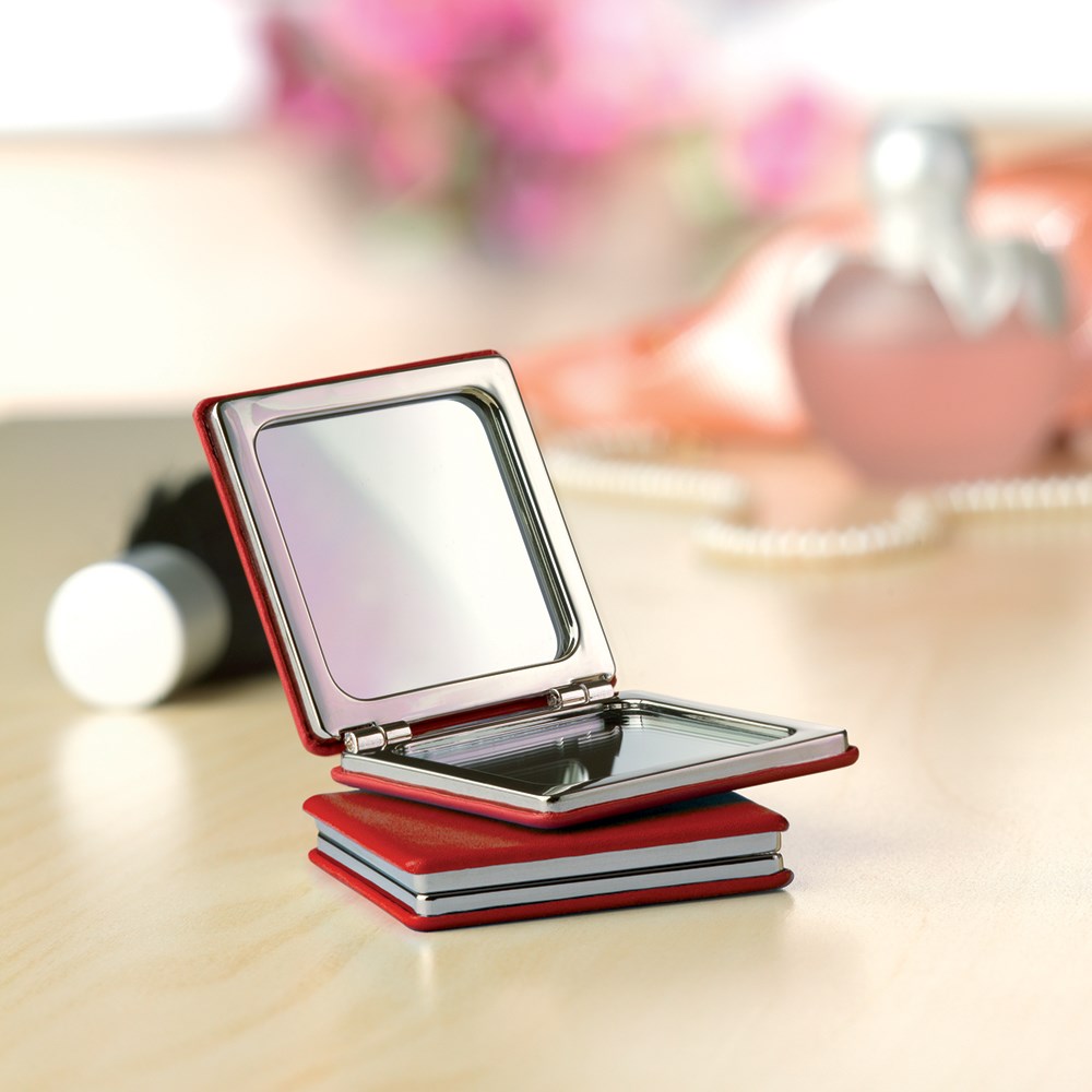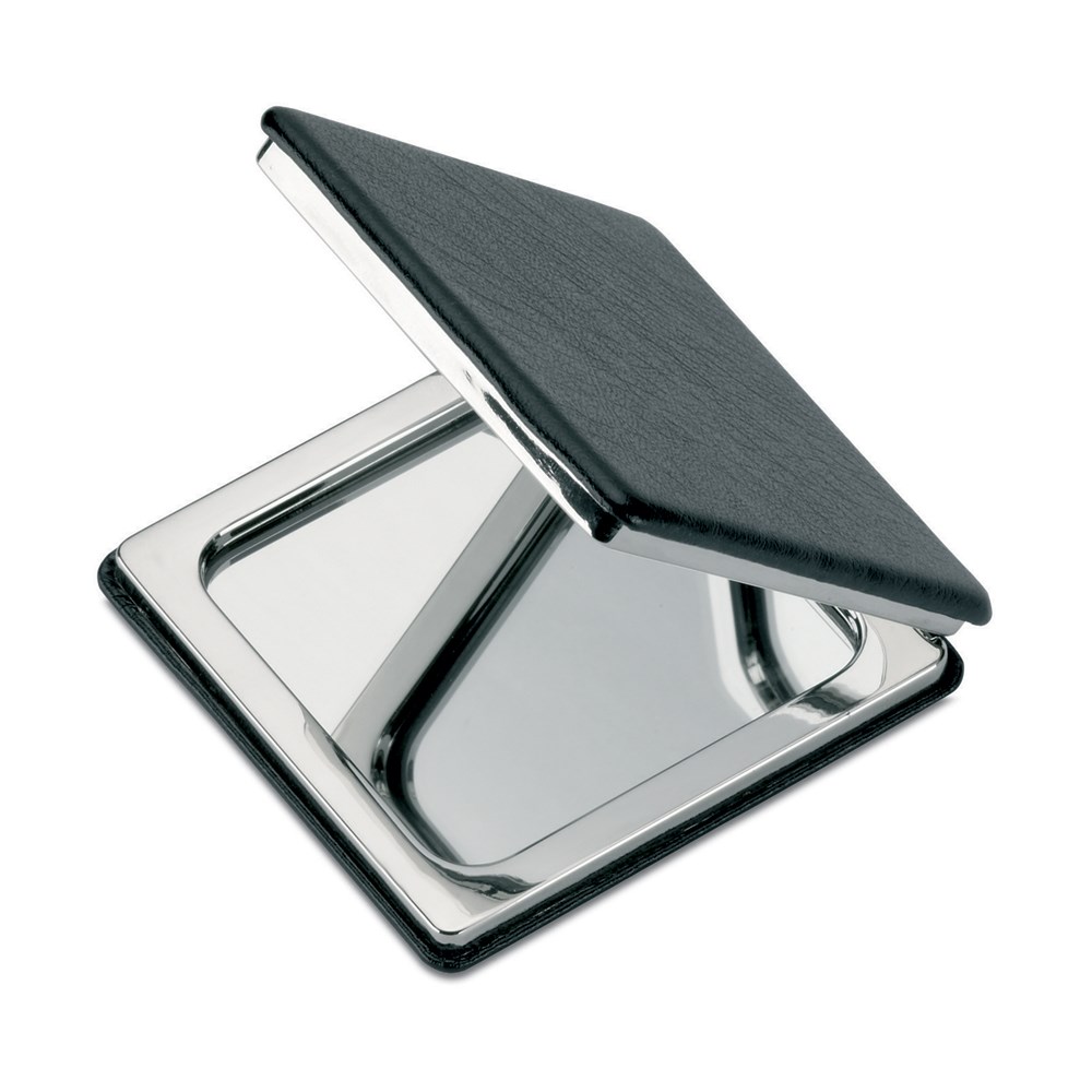 Dvostruko sklopivo ogledalo s PU poklopcem. Dimenzije: 5,5x5,5x1 cm.