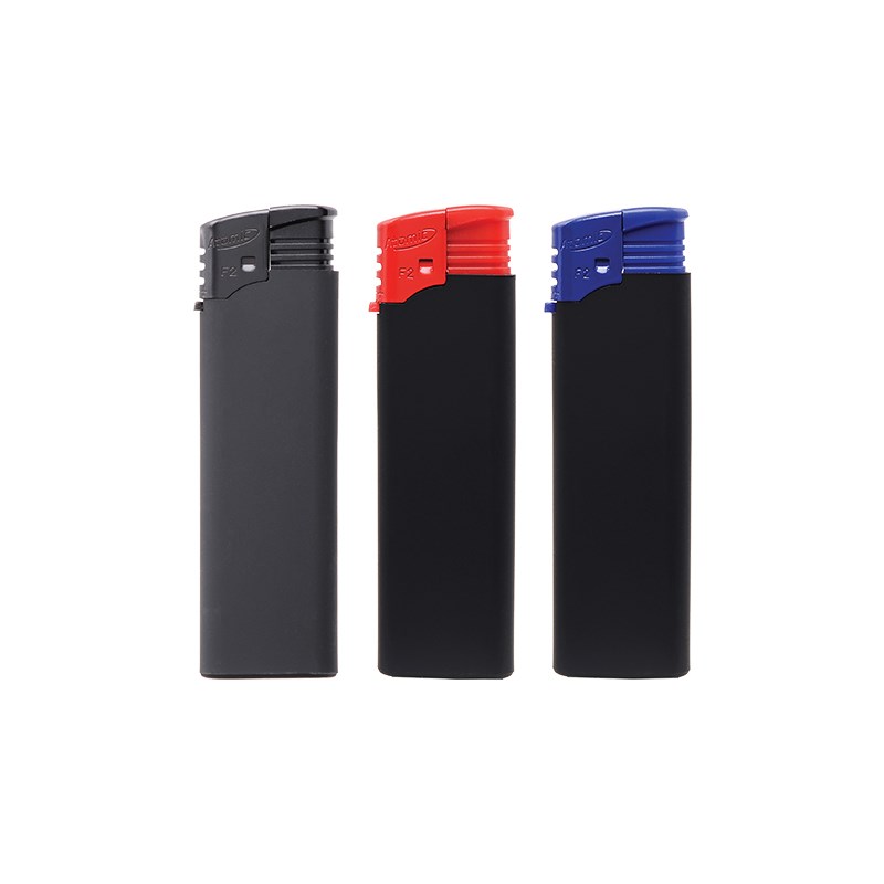 Elektronski upaljač s mat gumiranim tijelom za ugodno držanje. S mogućnošću punjenja.