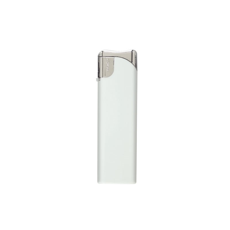 Sjajni tanki elektronski upaljač sa srebrnom glavom.