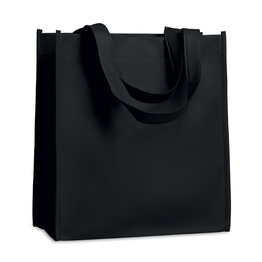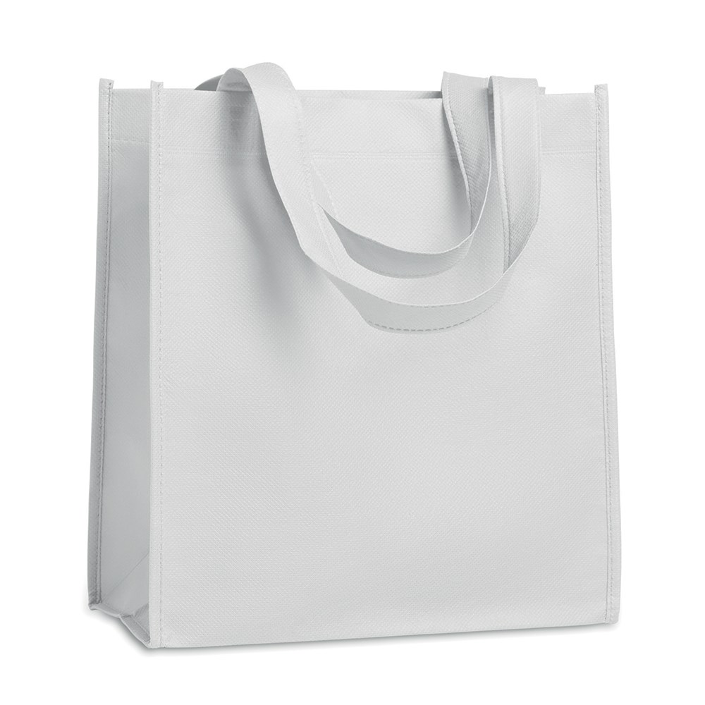 Torba od netkanog umjetnog platna s kratkim ručkama. Dimenzije: 27x30x15 cm.