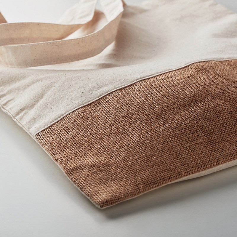 Torba od pamuka i jute. Duge ručke. 160 gr/m2. Dimenzije: 38x41 cm.