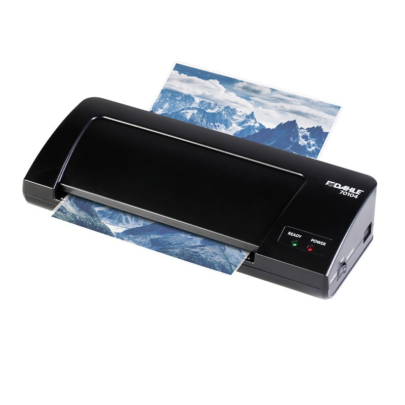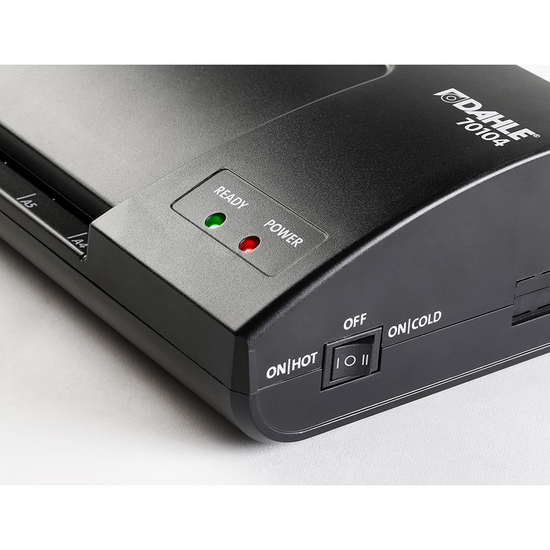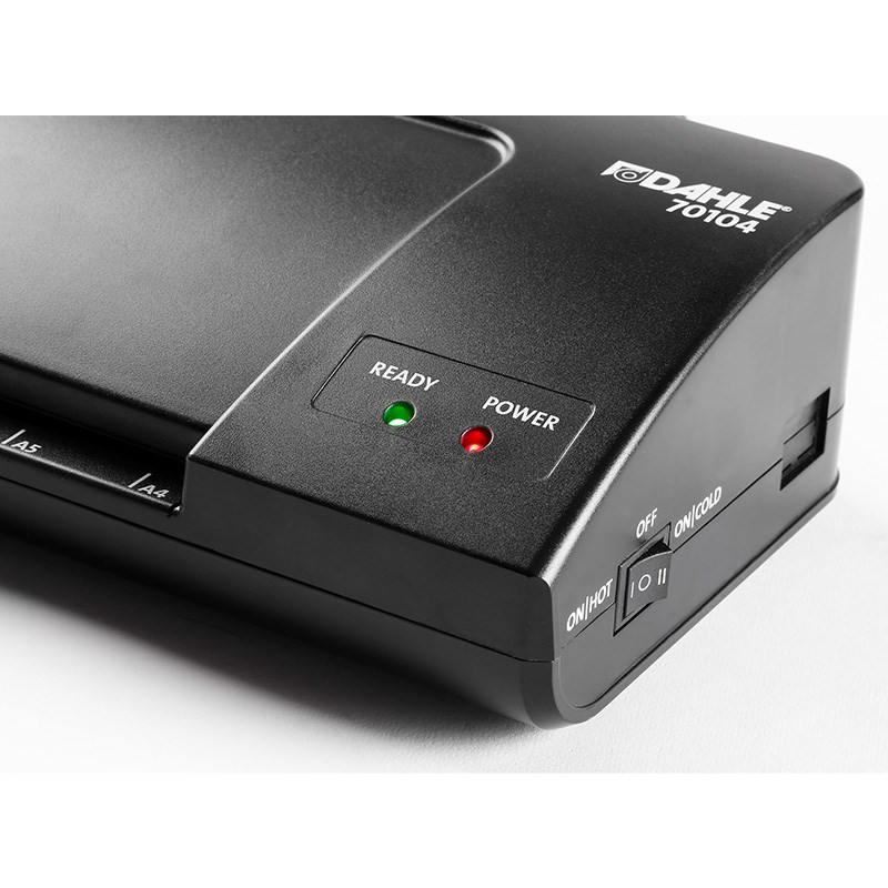 Plastifikator dokumenata Dahle 70104 primjeren je za domaću upotrebu, škole, manje urede. Odlikuje ga niska potrošnja energije i jednostavna te sigurna upotreba.